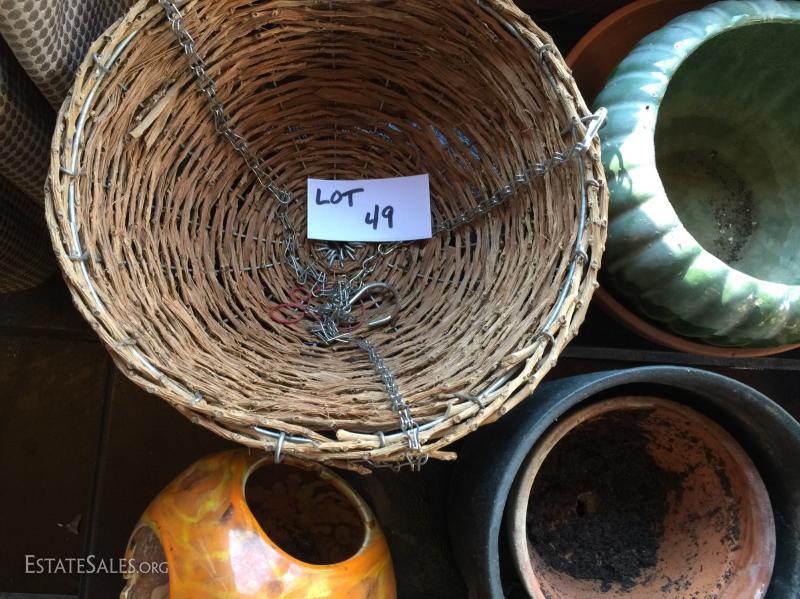 Lot 49 Various planters, feeder, hanging basket