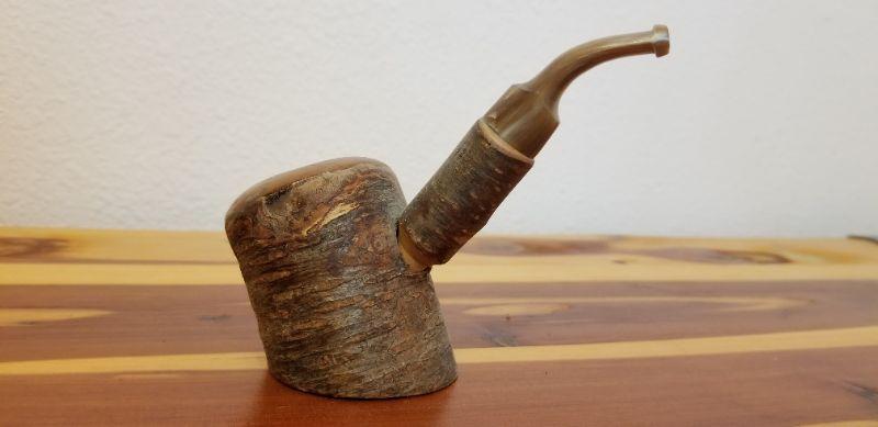 LOT #490:Vintage Polished Natural Wood Bark Design Pipe Unused