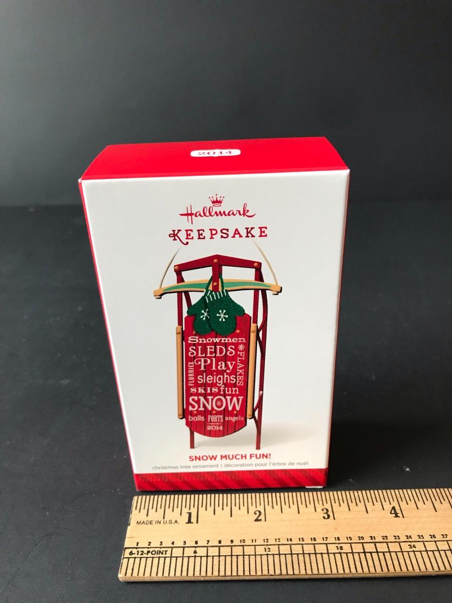 Assorted Hallmark Keepsake Christmas Ornaments. All Holiday items in this auction are as-seen. The client collected a lot of holiday pieces and some are new in box, some were displayed once and come with original box, and some have been displayed and come with no box. They are all pre-owned in some fashion and have been stored in an attic or on shelf in library. Please see all pictures. The pictures show condition, measurements if taken, and what is included in the lot. Due to the large amount that we photograph and the time frame, we are not always able to take measurements. All items unless noted, are pre-owned and have been used. Thank you