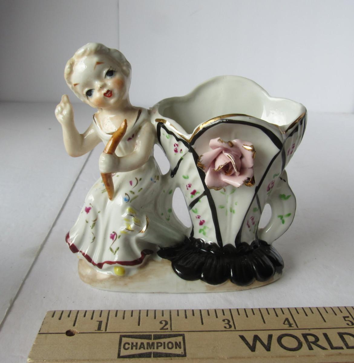 Lot 490: Vintage Planter With Lady and Applied Rose
