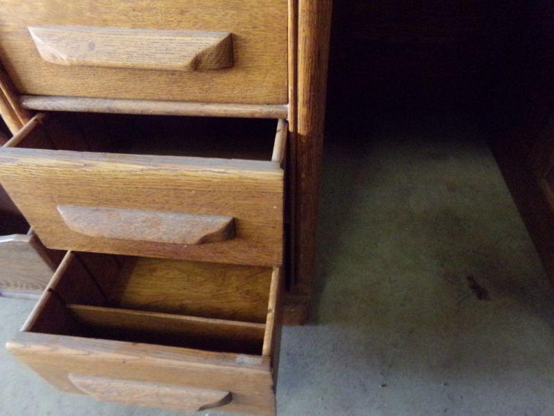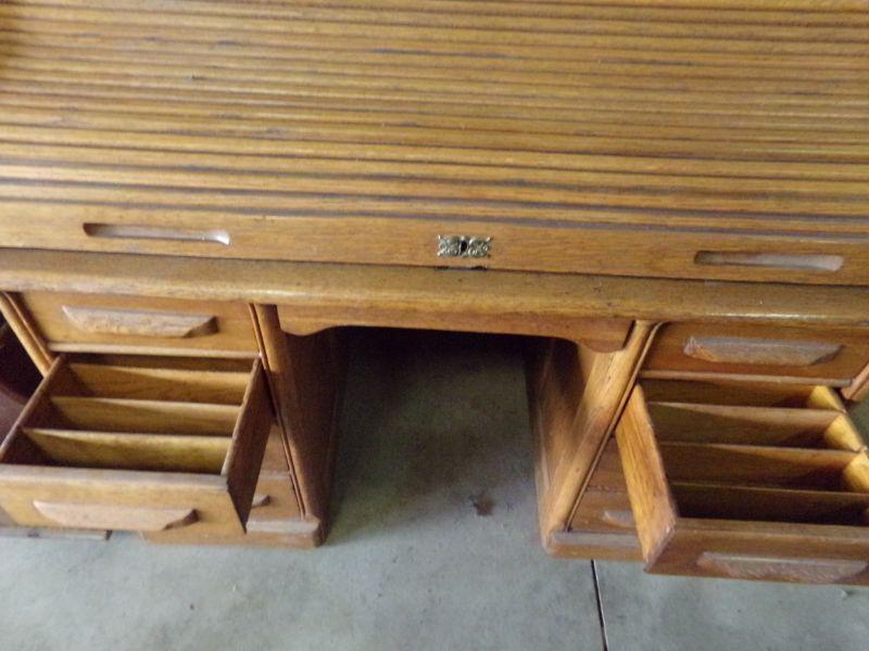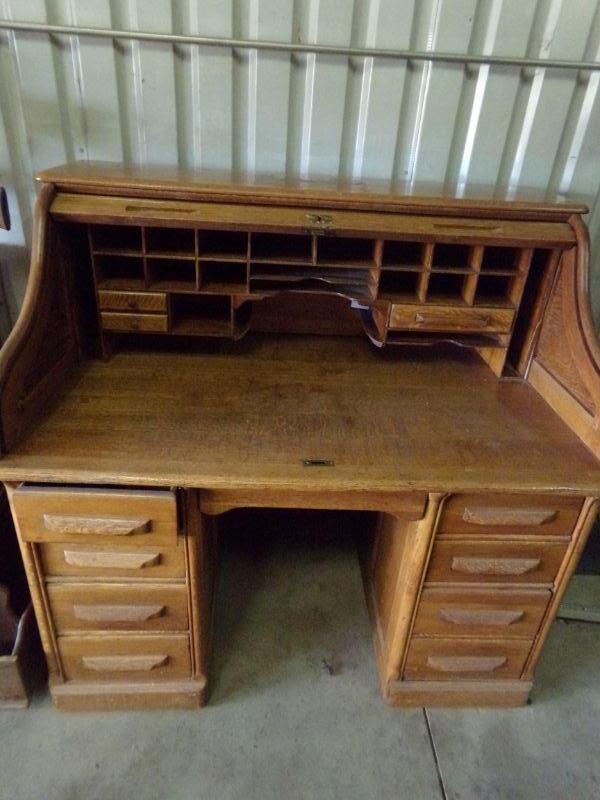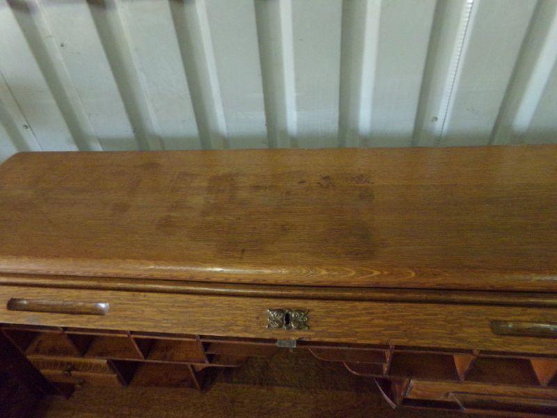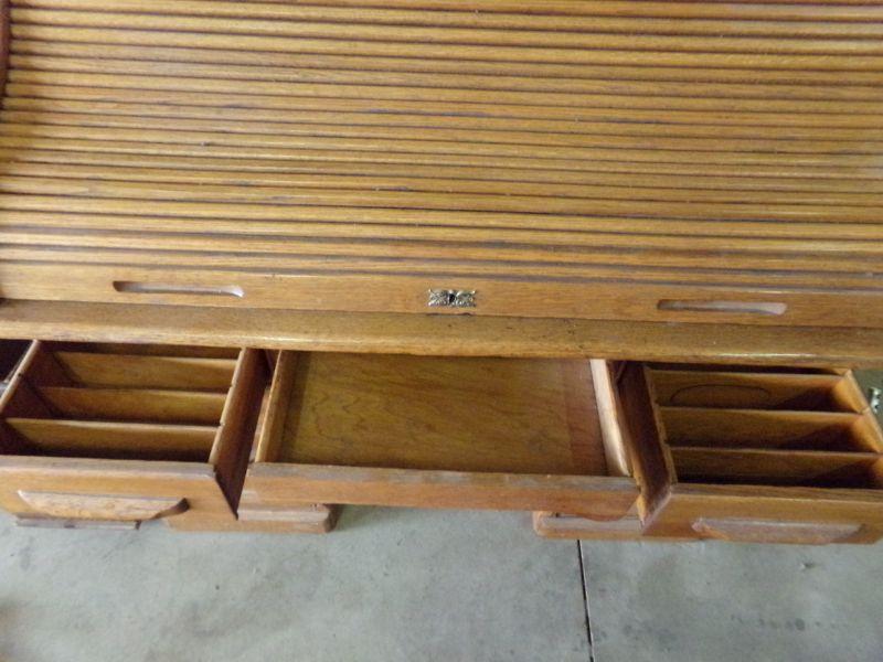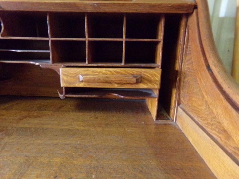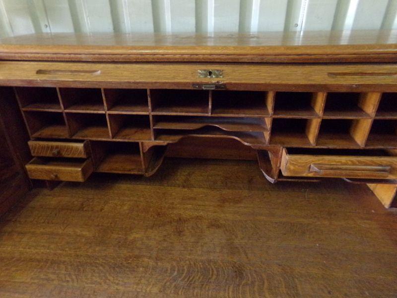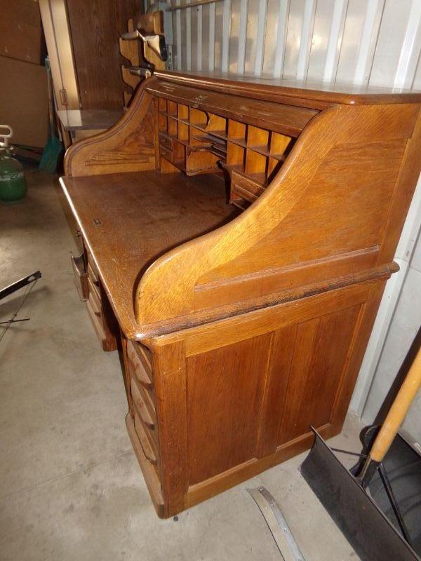 ROLL TOP WOODEN DESK, MEASURES 49"W x 47"H x 31"D