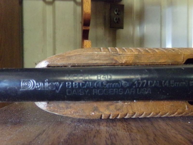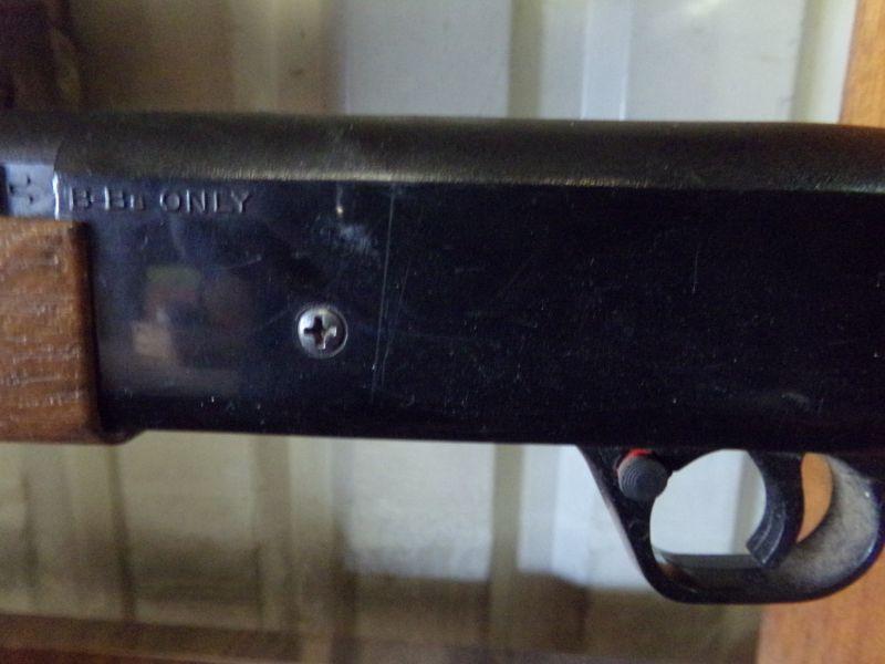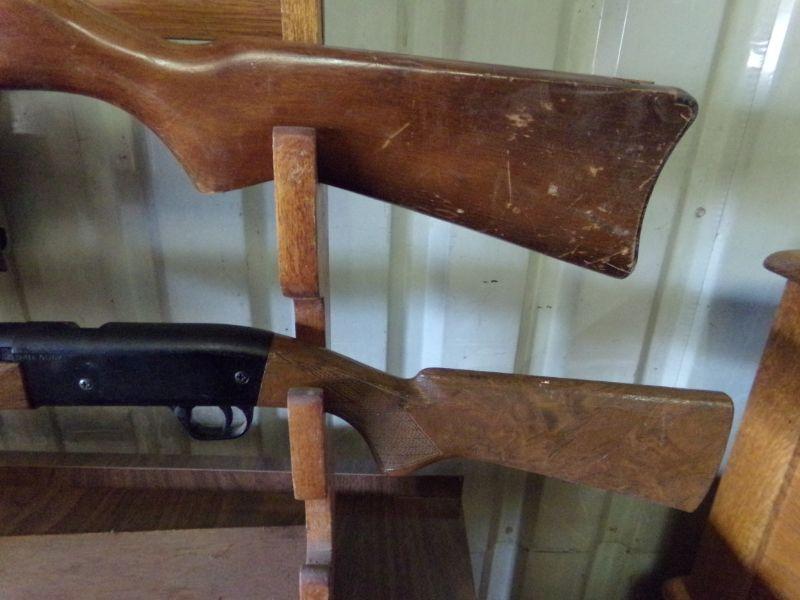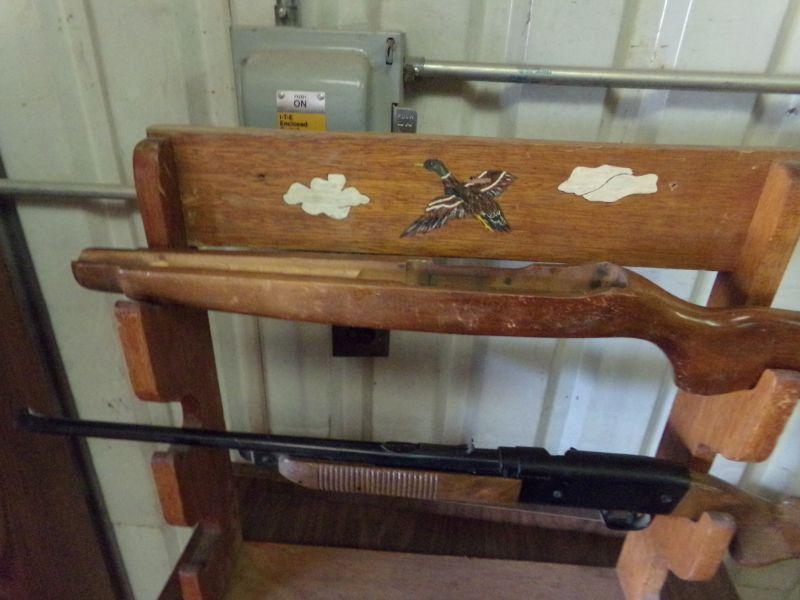 WOODEN HANGING GUN RACK, WOODEN RIFLE STOCK & BB GUN