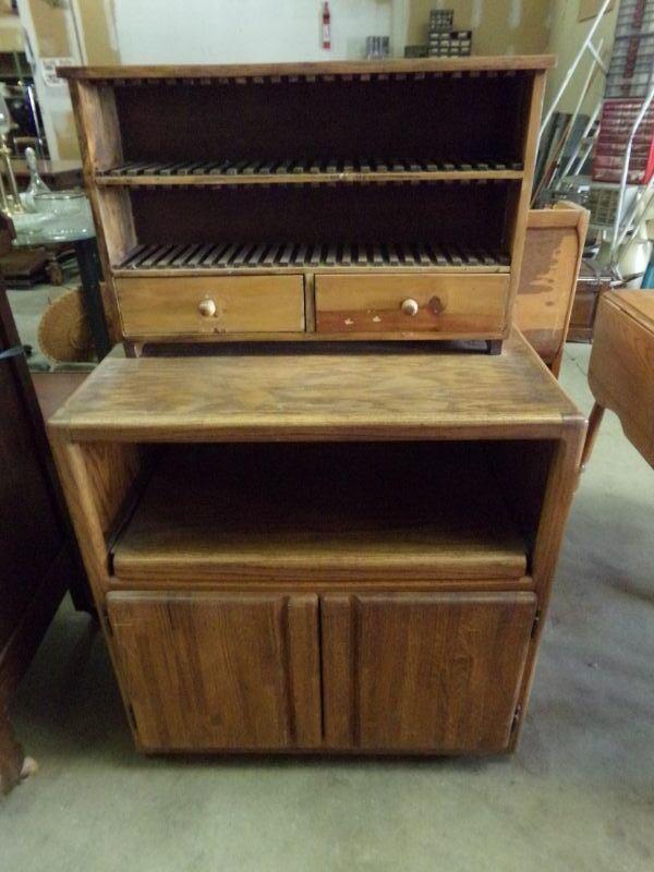 MICROWAVE CART AND WOODEN CD HOLDER
