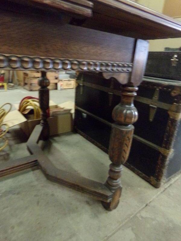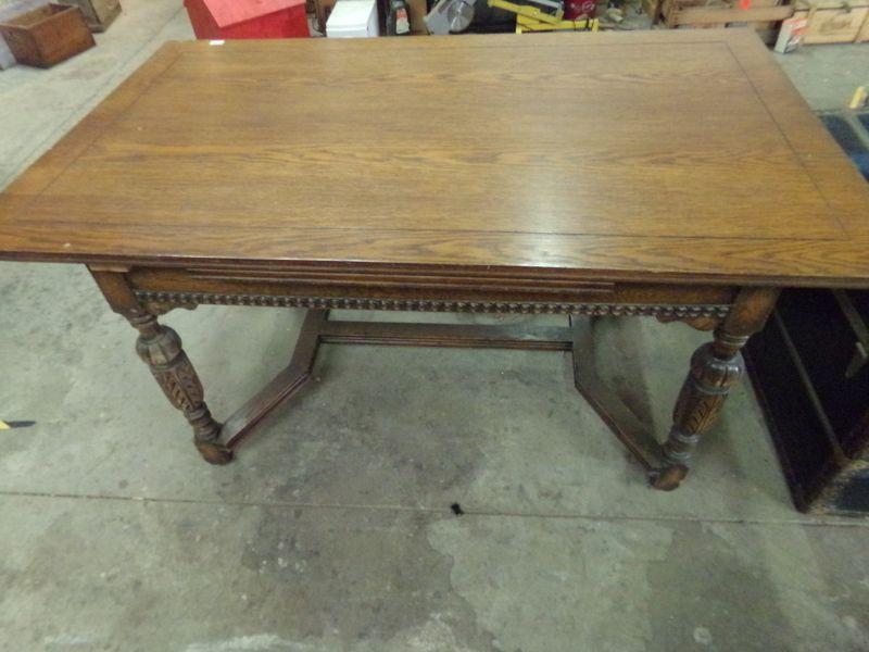 WOODEN RECTANGULAR TABLE, TOP NEEDS TO BE ATTACHED. IN FAIR CONDITION.