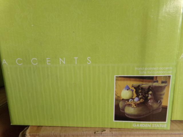 LARGE COLLECTION OF ACCENT BOOTS W/ BIRDS. 3 BIG BROWN BOXES WITH BRAND NEW IN THE BOX ACCENT BOOTS.