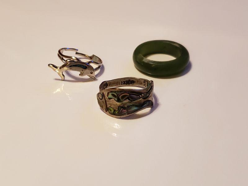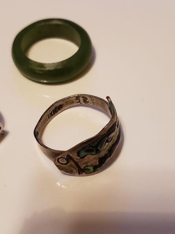 Lot 491: Vintage Rings (Taxco, Jade, Abalone)