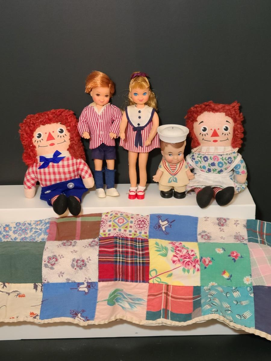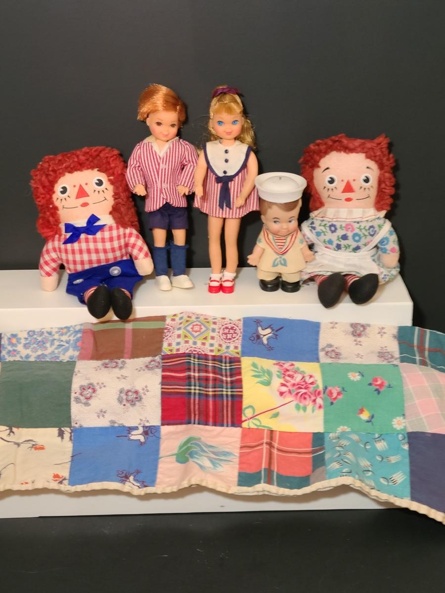 Hard to find Tutti and Todd by Mattel and other vintage dolls. These are all as-found and seen in pictures. Also, included is a small antique quilt scarf baby blanket most likely for dolls. The pictures show condition, measurements if taken, and what is included in the lot. Due to the large amount that we photograph and the time frame, we are not always able to take measurements. All items unless noted, are pre-owned and have been used. If you purchased furniture, you must bring help. We do not allow one person to carry large furniture out on their own. Bring help, tools and a truck for the safety of our client’s homes, and your personal safety. Company policy. Thank you.