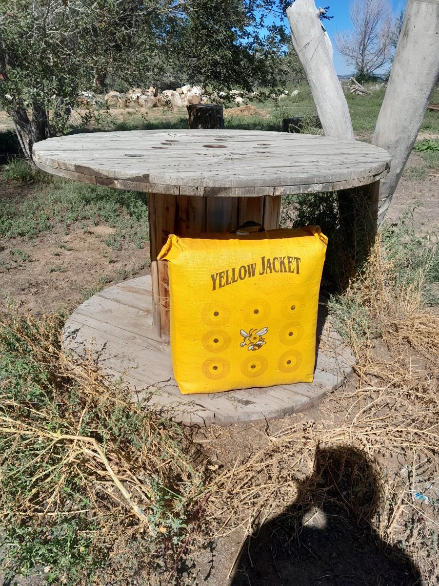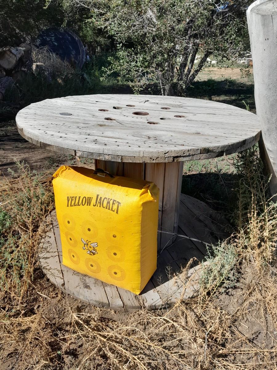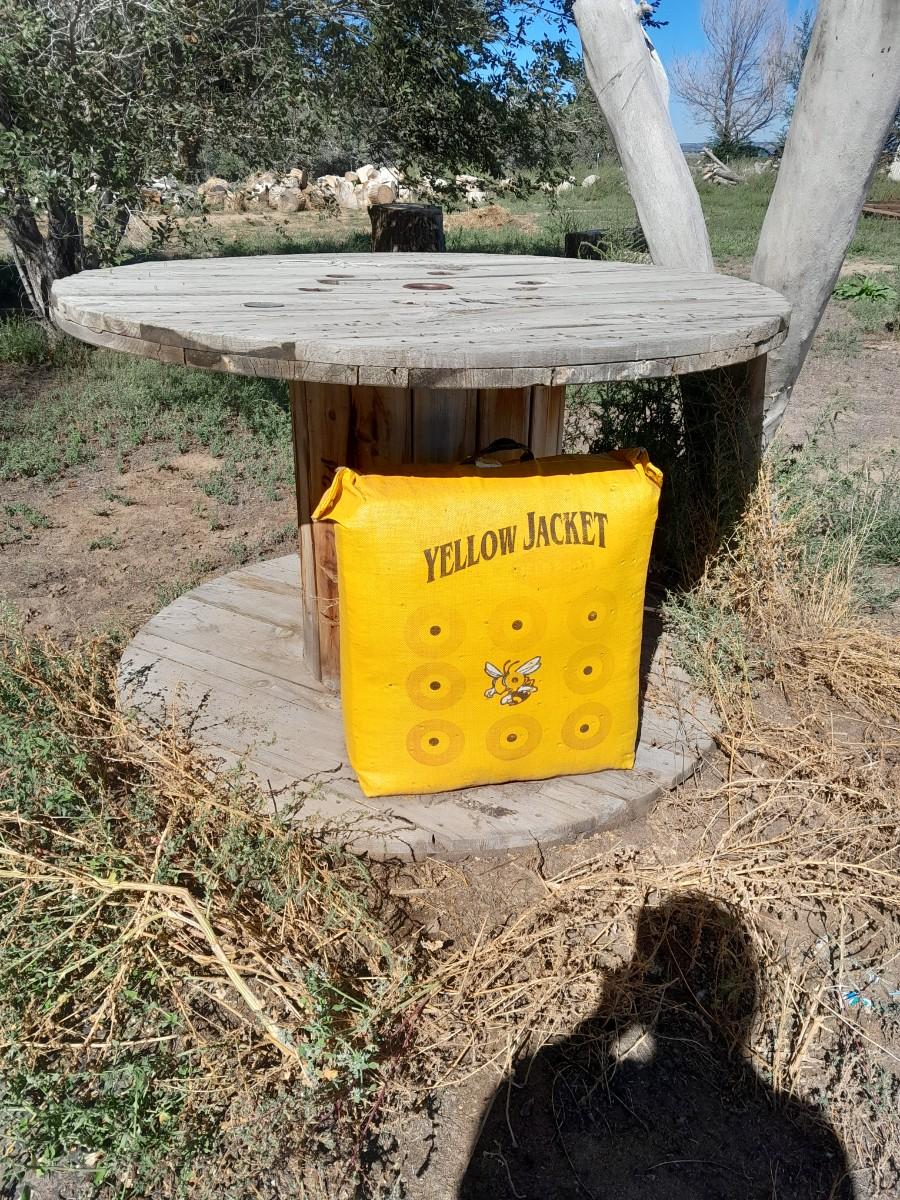 YELLOW JACKET TARGET AND WOODEN SPOOL