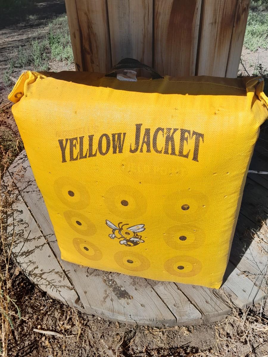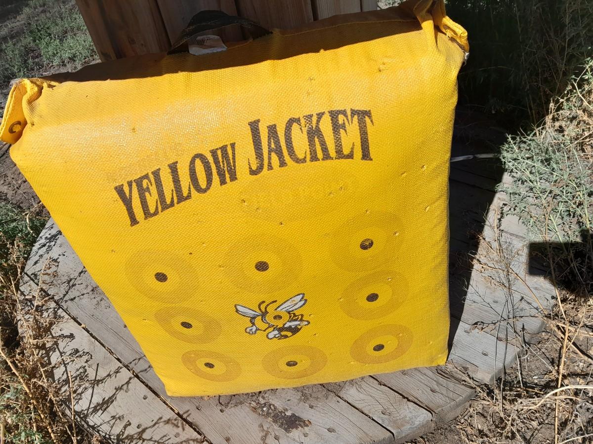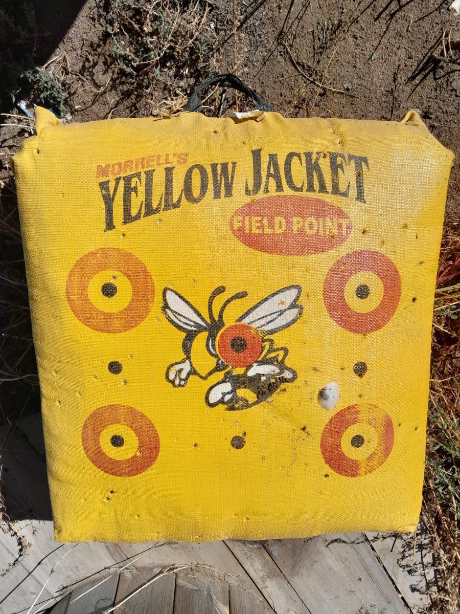 YELLOW JACKET TARGET AND WOODEN SPOOL