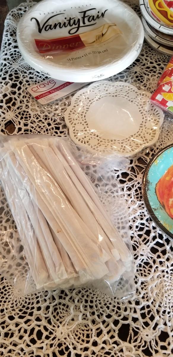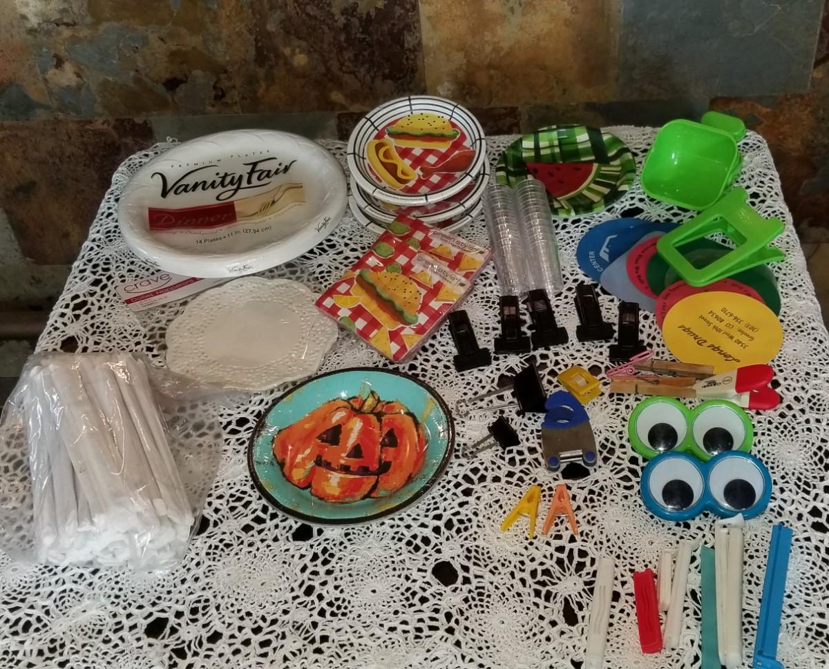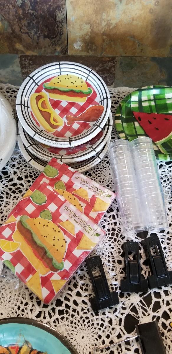 Lot 492: Disposible Plates, Napkins, Straws and Kitchen Clips