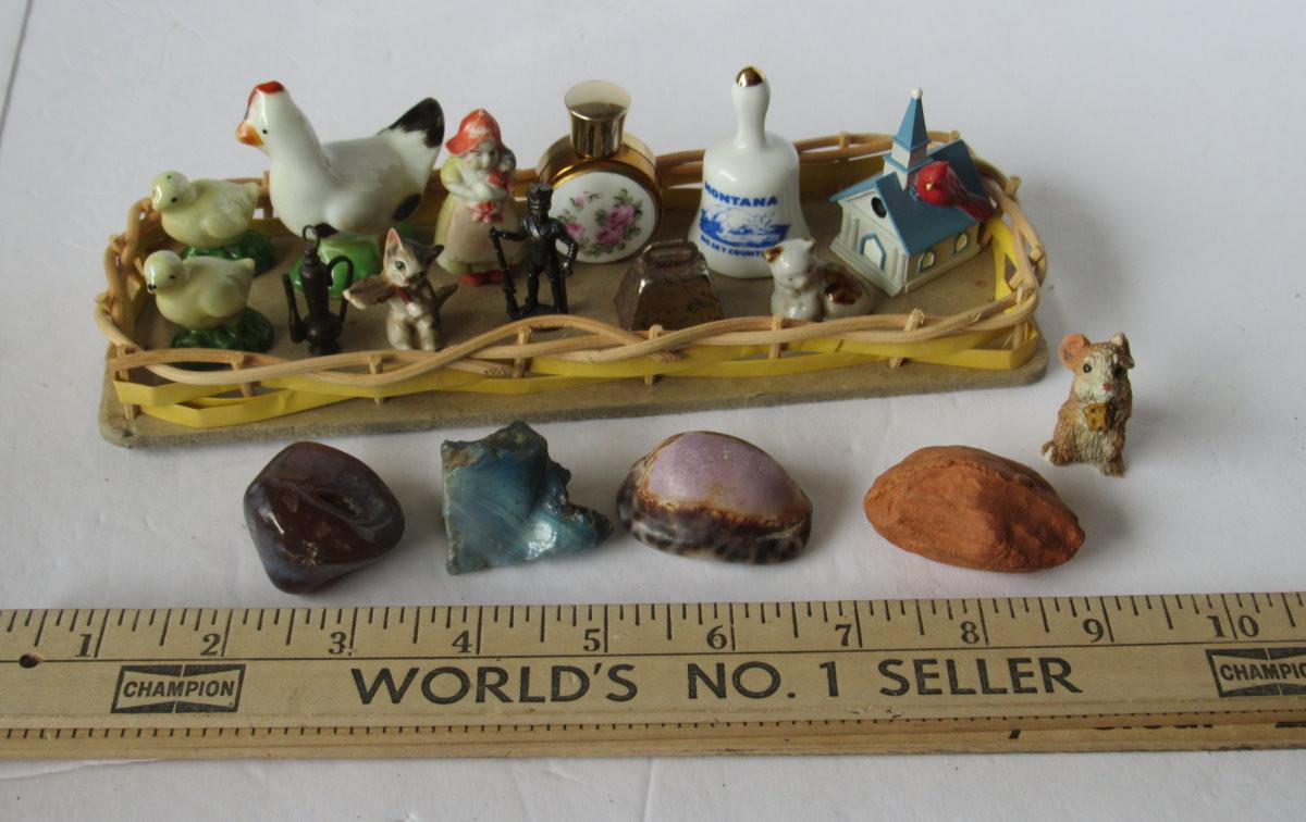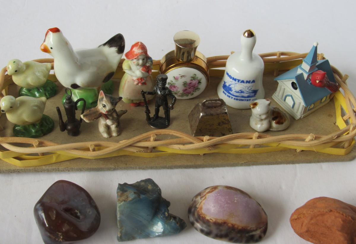Miniatures, shell, stones, most are good, one or two may be damaged. Shipping is available at shipping cost plus $5 handling fee per box. All sales final, no refunds. See our terms for details.