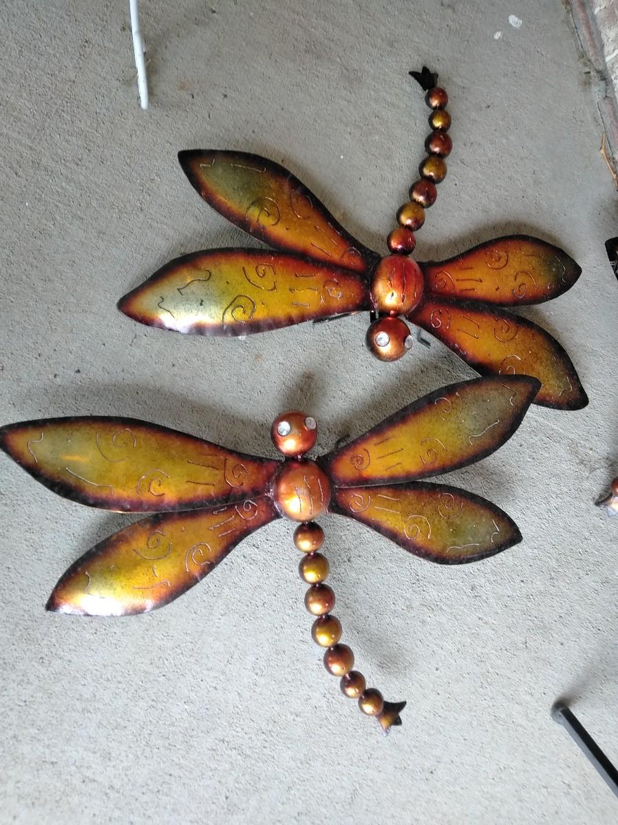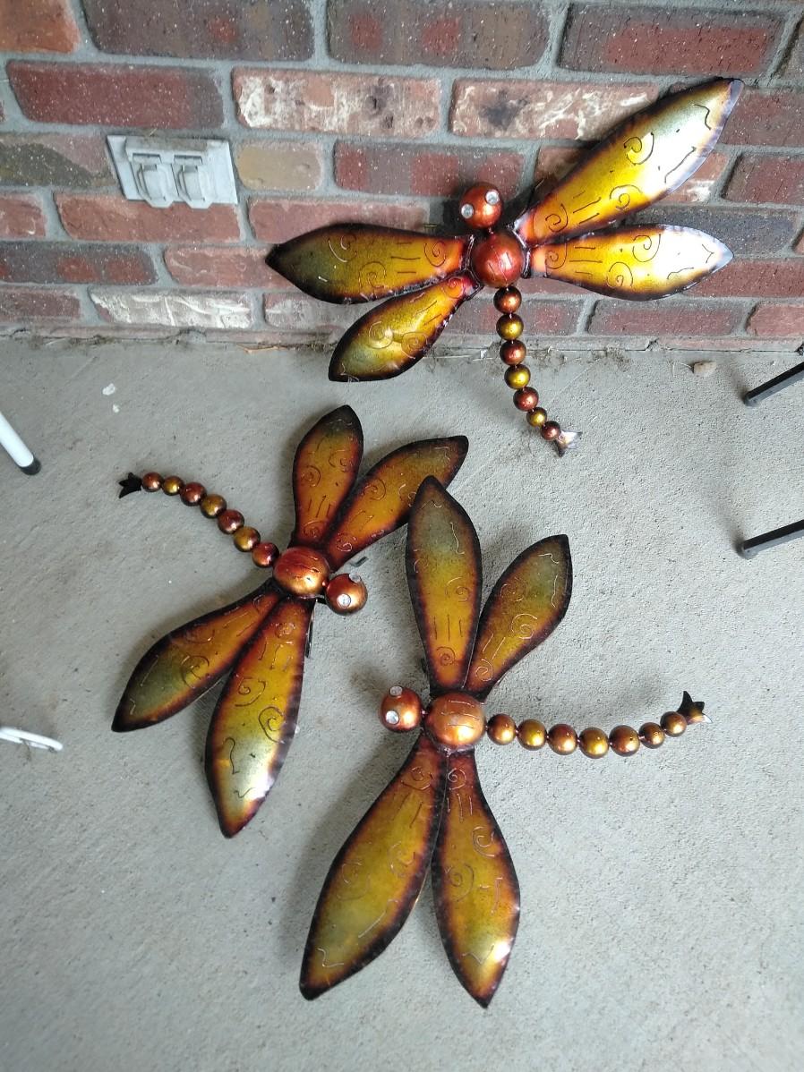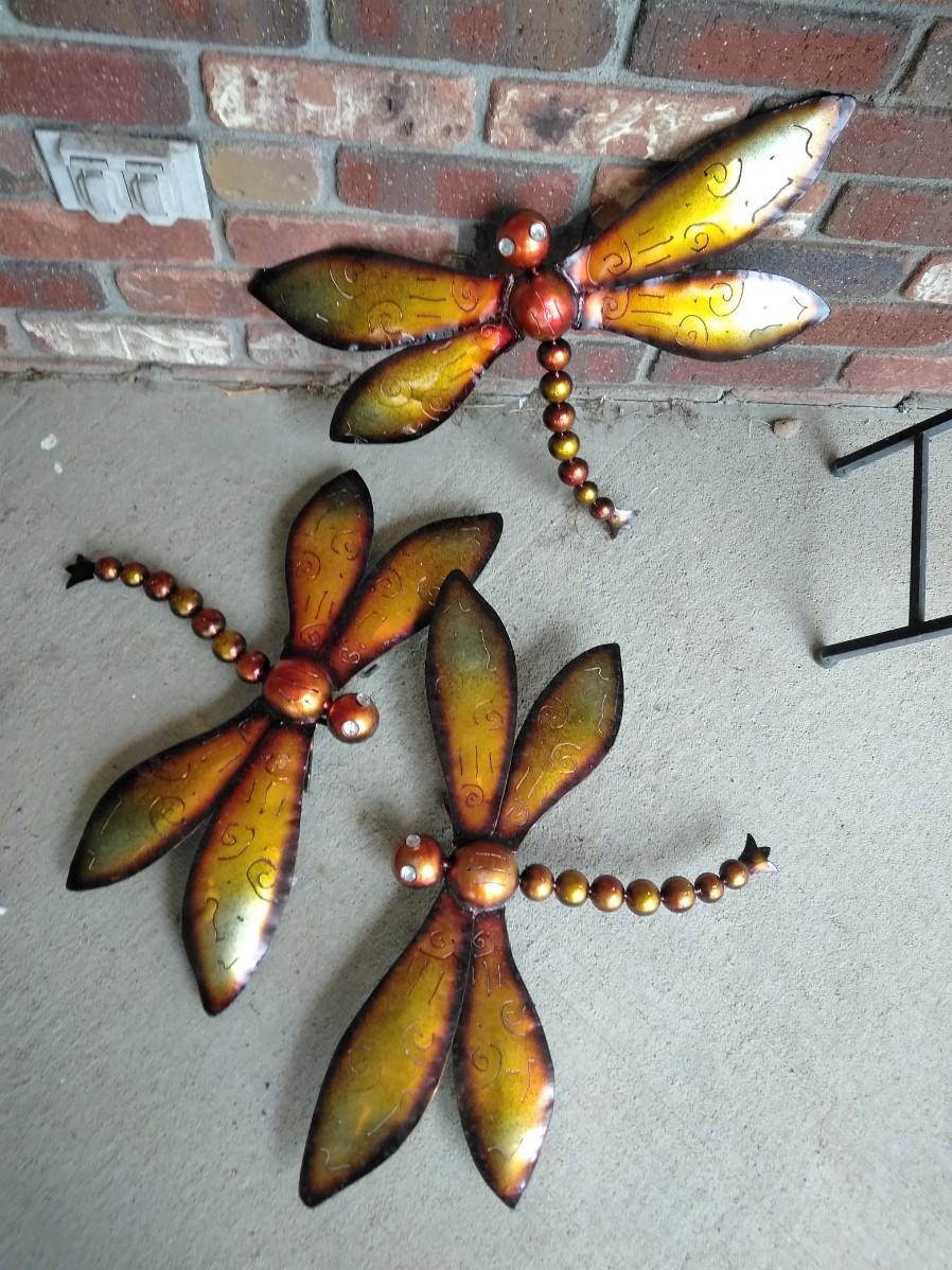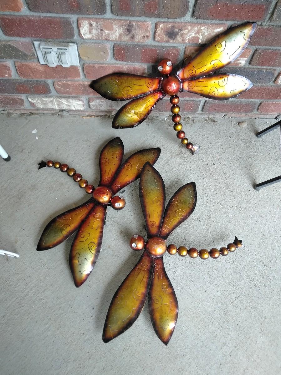 THREE 14" X 20" LIGHT METAL DRAGONFLIES