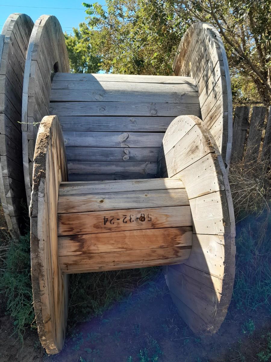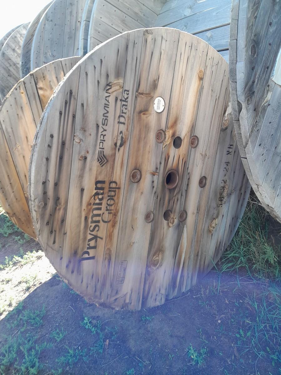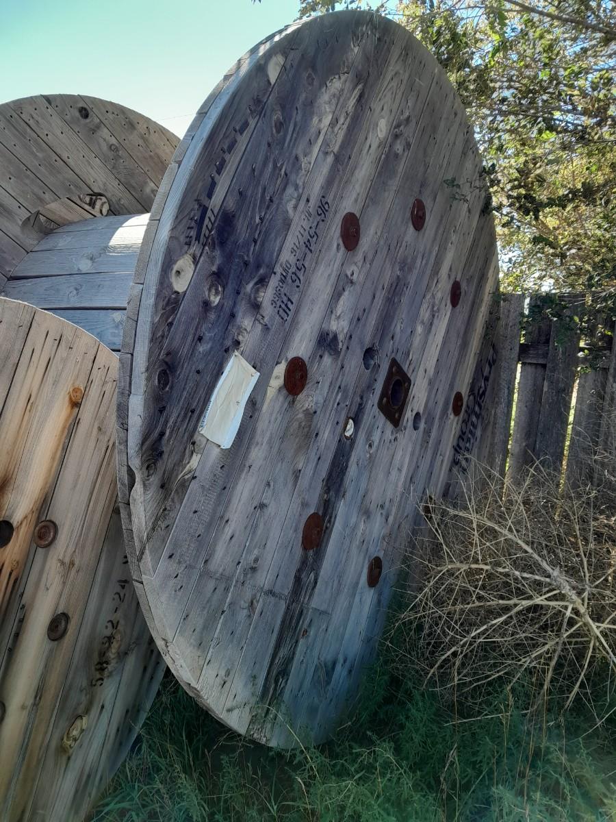 TWO DIFFERENT SIZED WOODEN SPOOLS ONE BIG ONE SMALL
