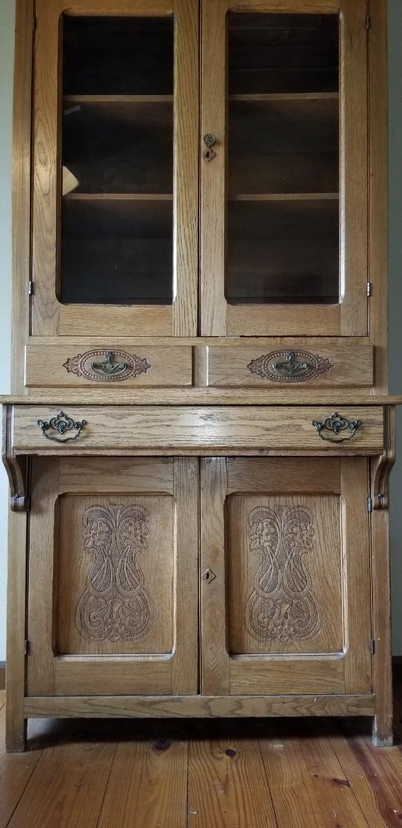 Lot 493: Antique 1 piece Hutch