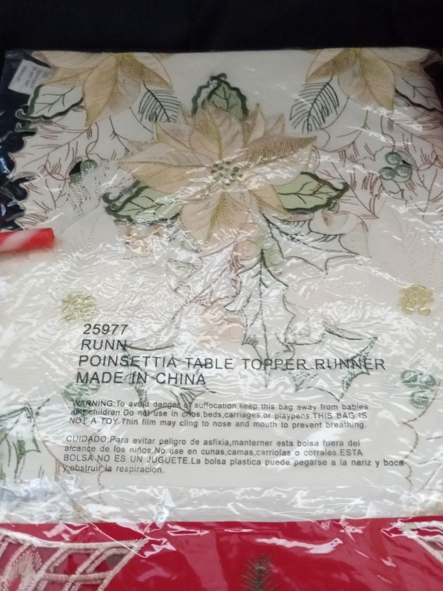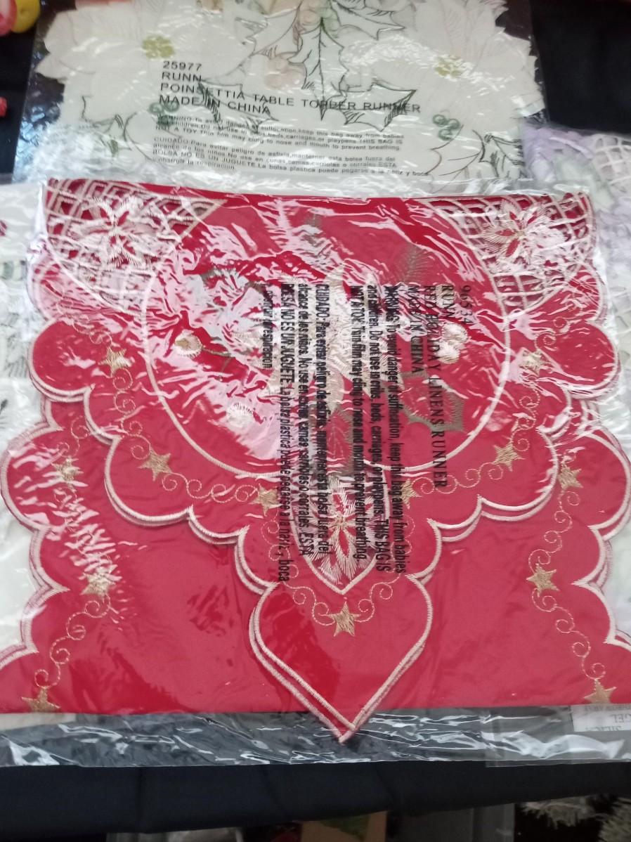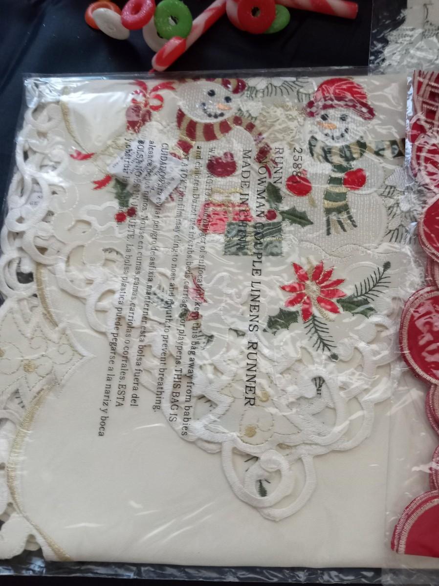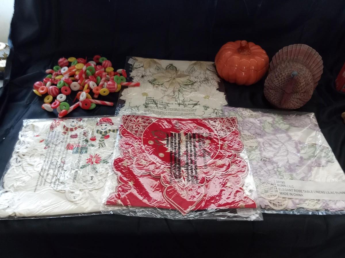 LOT 494 FOUR NEW TABLE RUNNERS, CANDY GARLAND AND MORE