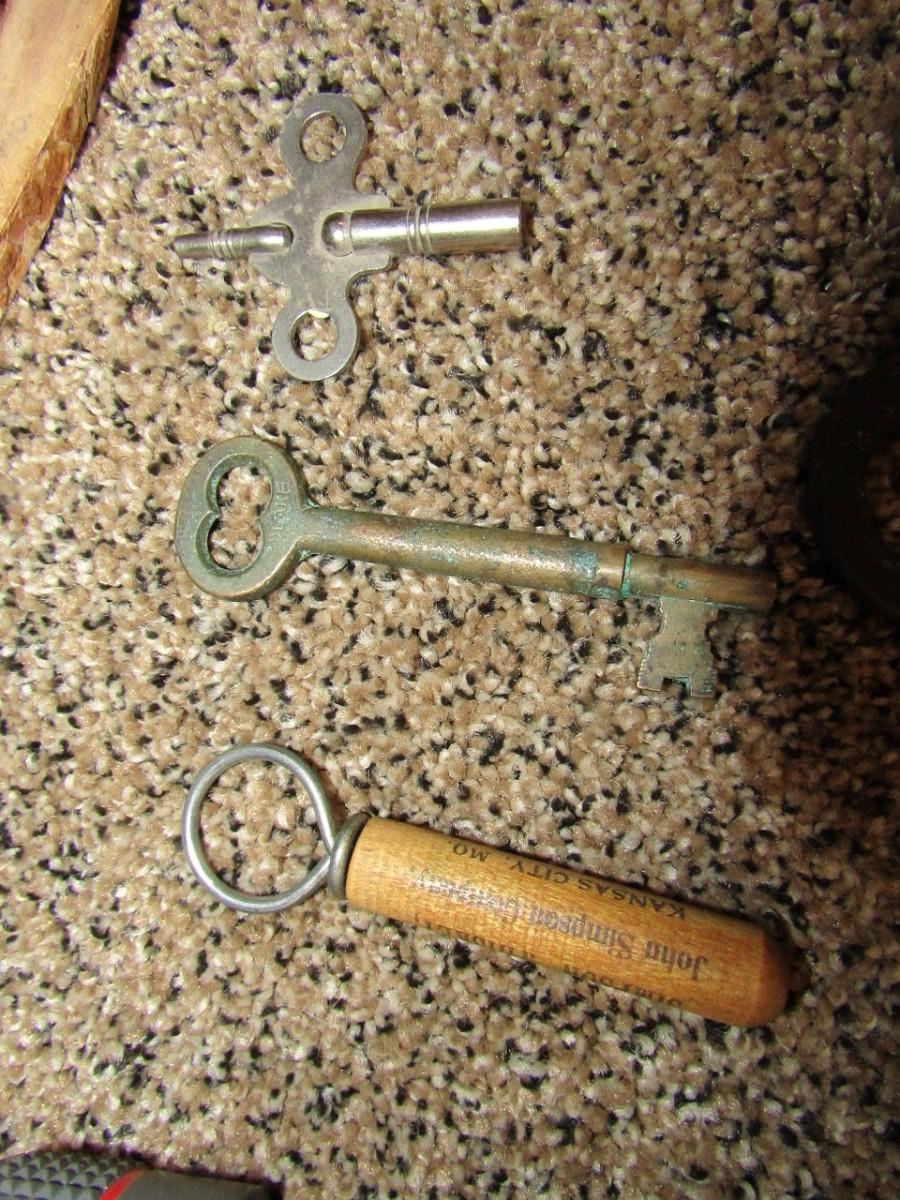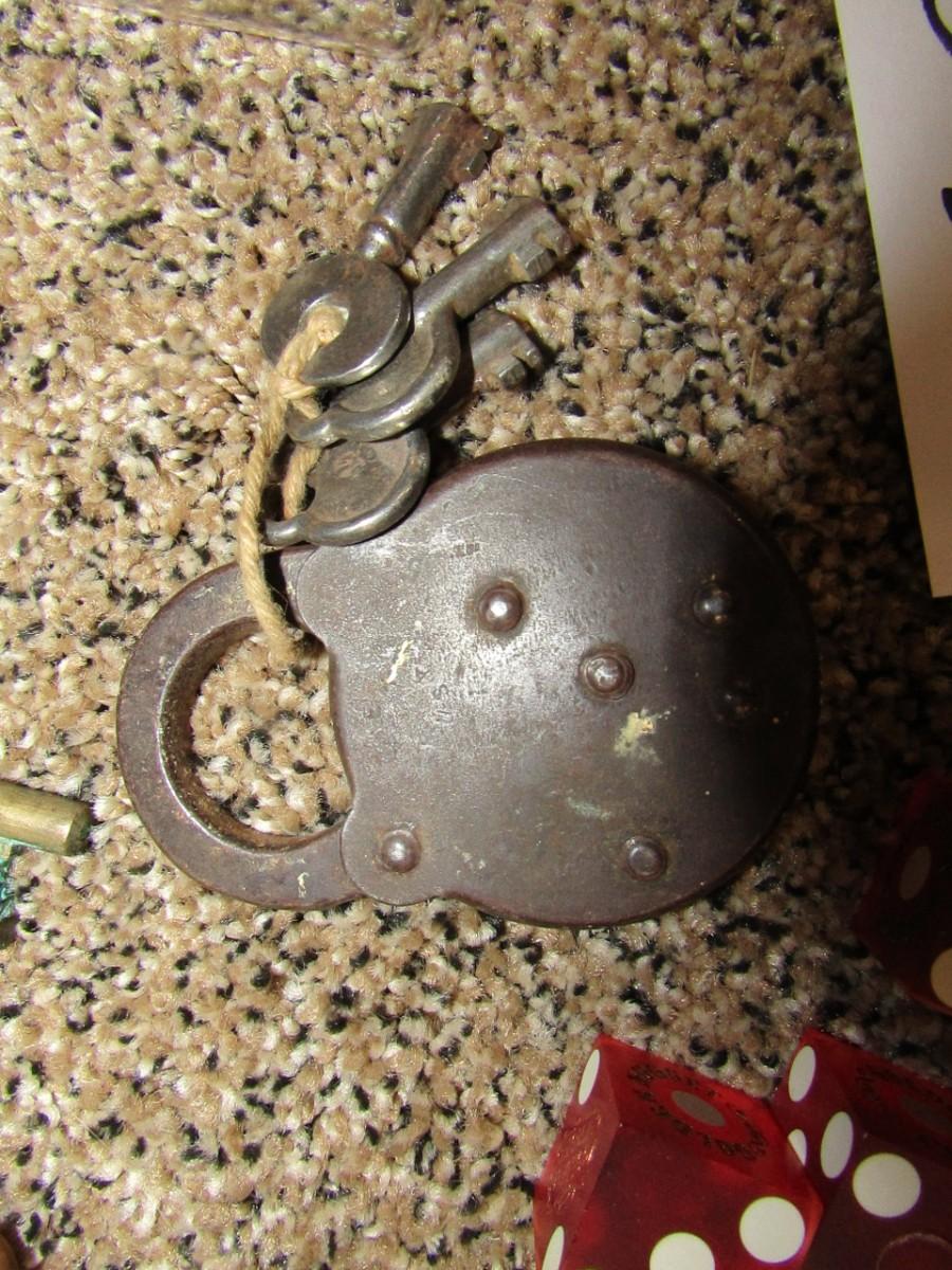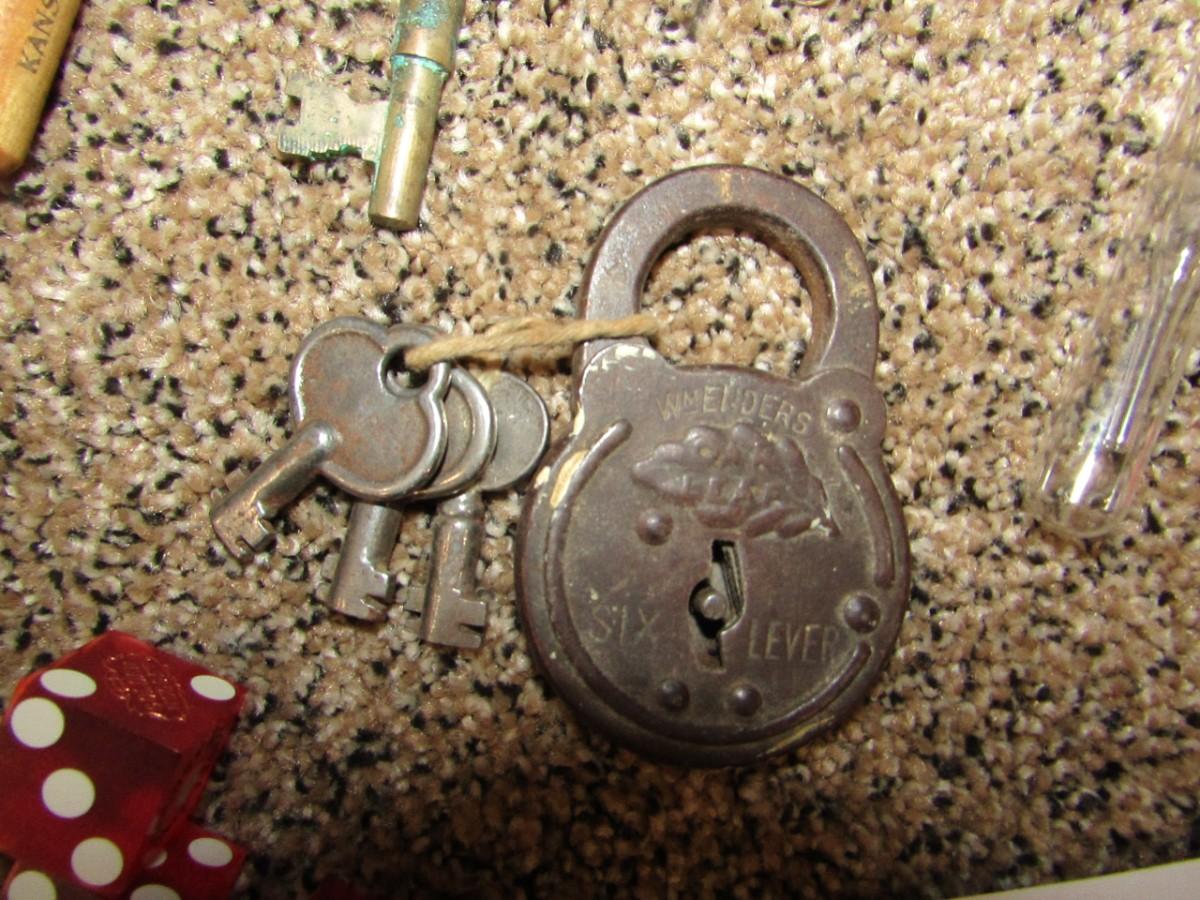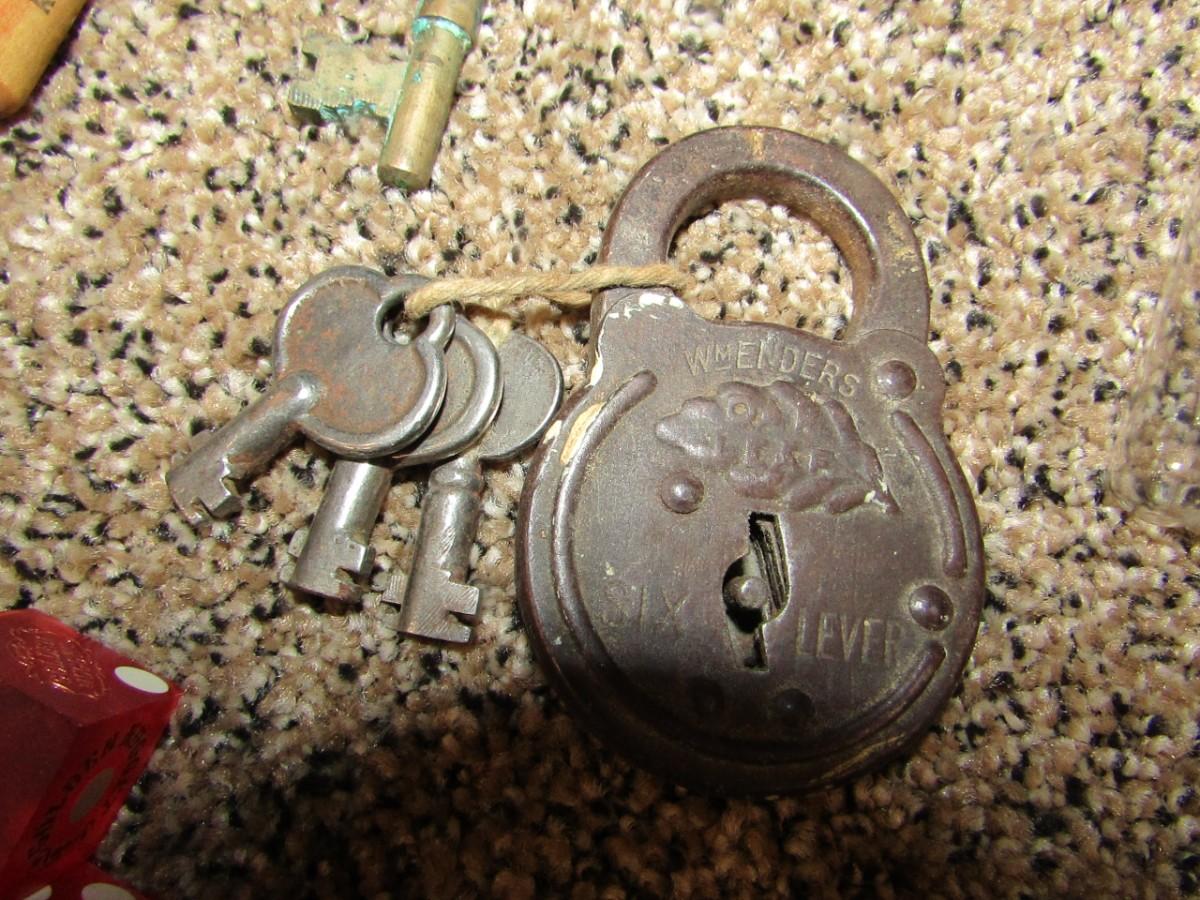 OLD PADLOCK WITH 3 WORKING SKELETON KEYS