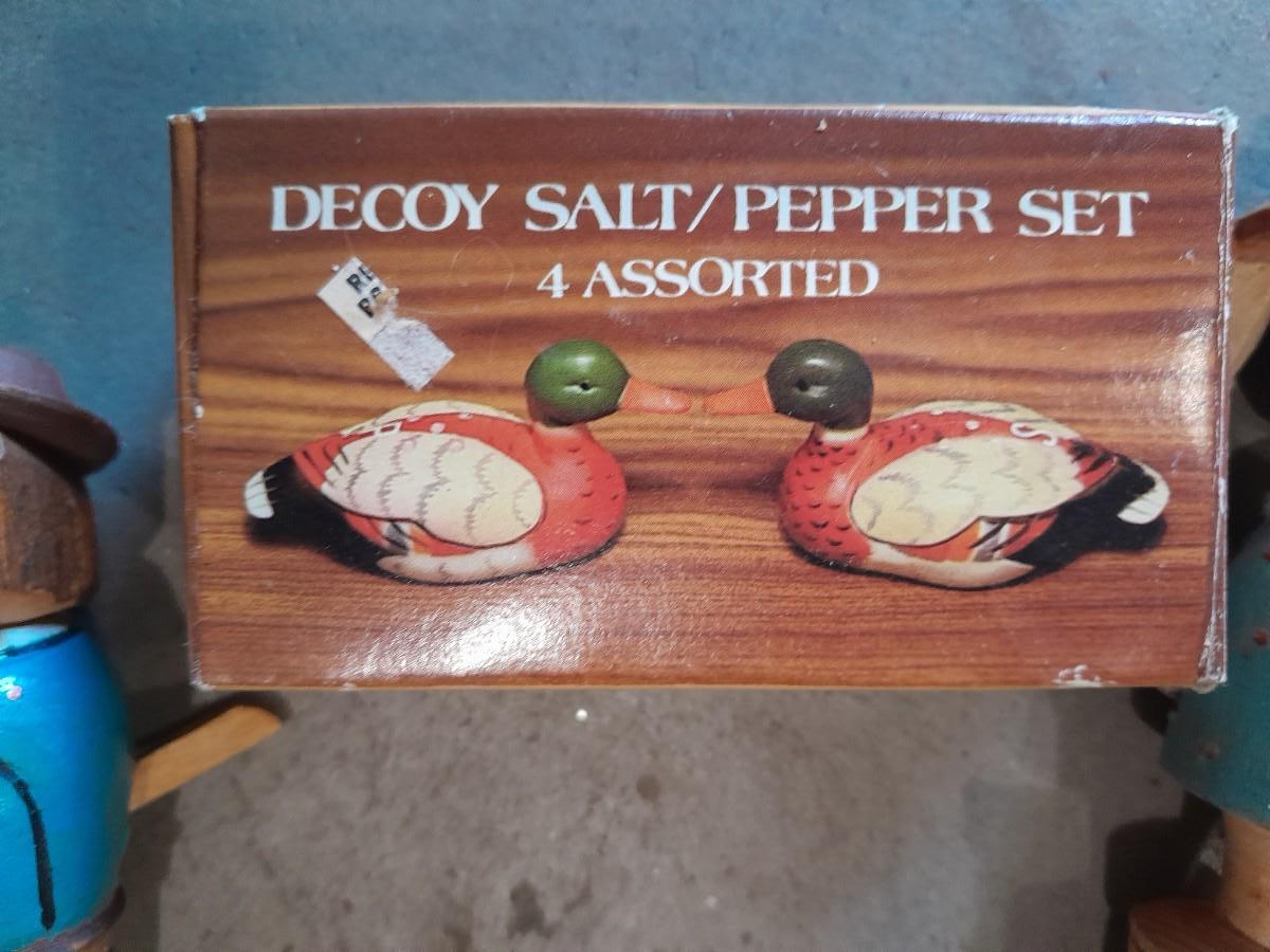 LOT 494 VINTAGE ANIMATED WOOD FIGURE WINE CORKS AND SALT & PEPPER DUCKS