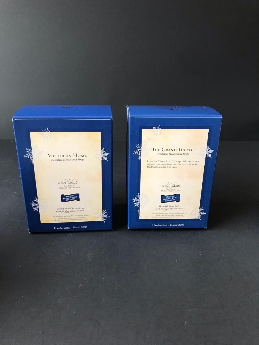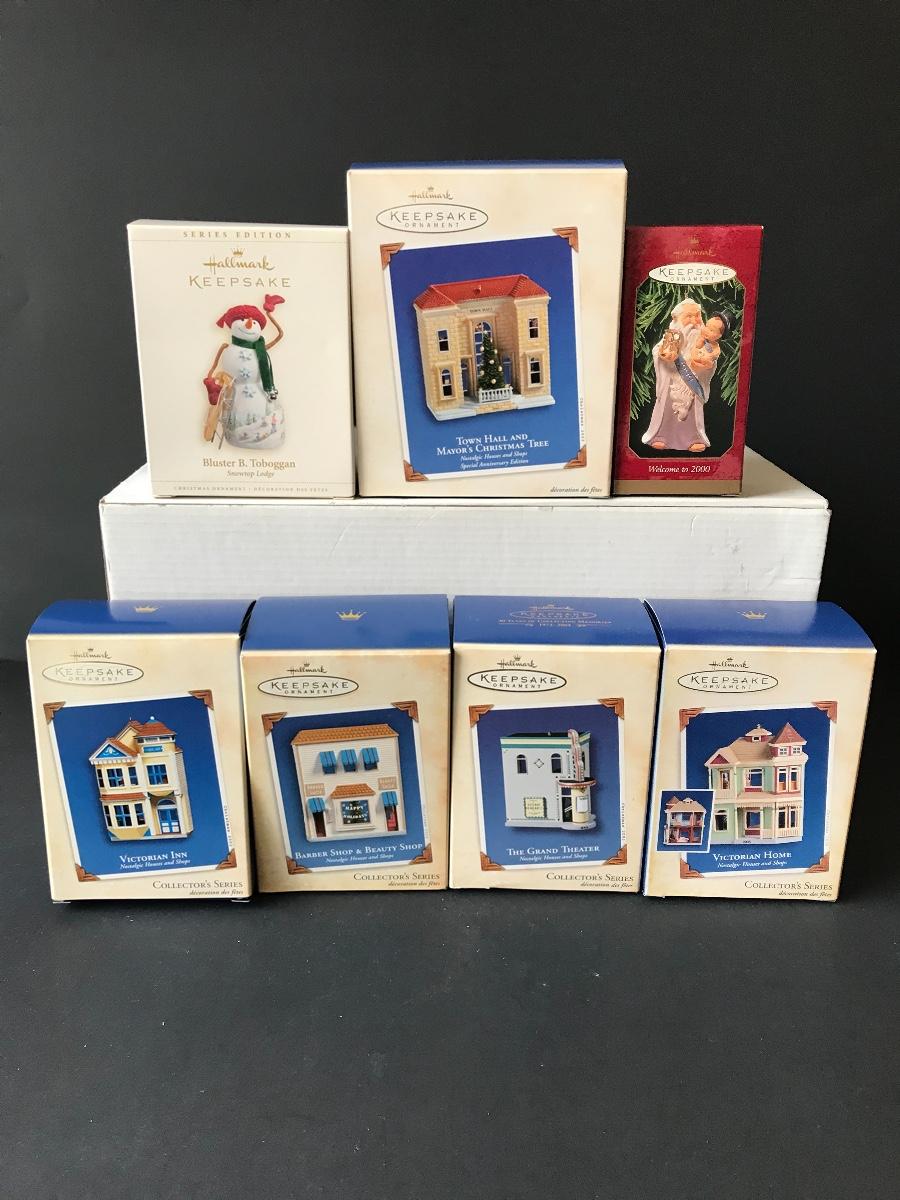Hallmark Christmas Ornaments - Houses & More. All Holiday items in this auction are as-seen. The client collected a lot of holiday pieces and some are new in box, some were displayed once and come with original box, and some have been displayed and come with no box. They are all pre-owned in some fashion and have been stored in an attic or on shelf in library. Please see all pictures. The pictures show condition, measurements if taken, and what is included in the lot. Due to the large amount that we photograph and the time frame, we are not always able to take measurements. All items unless noted, are pre-owned and have been used. Thank you