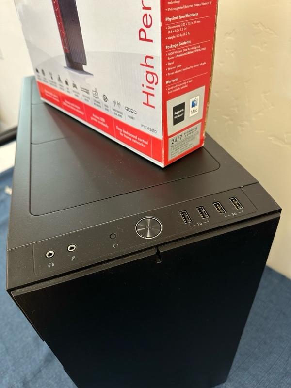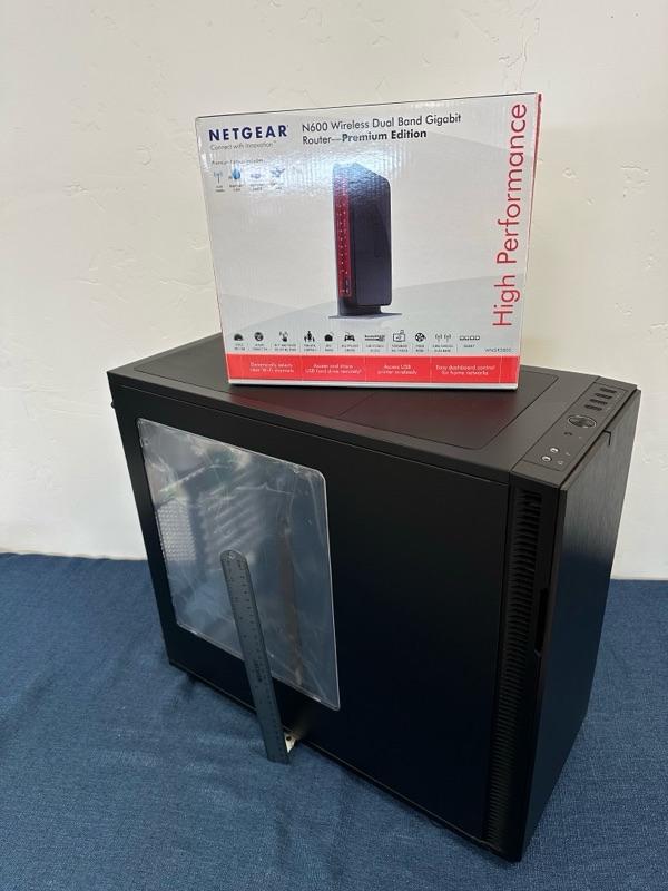 Lot 496 Fractal Design computer cabinet/cabinet only and Netgear wireless router