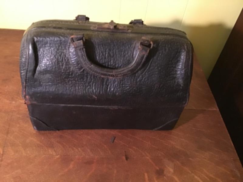 LOT # 496 Antique Leather Doctors Bag with Instruments