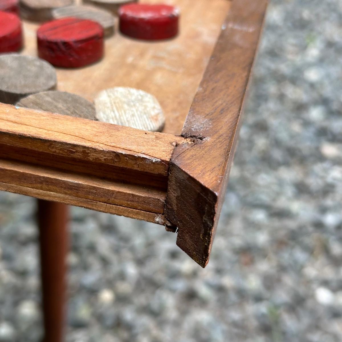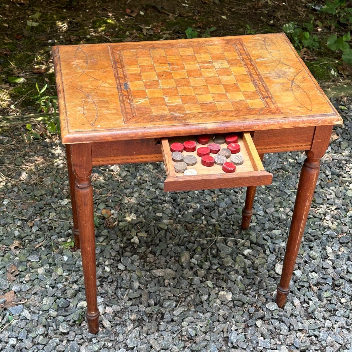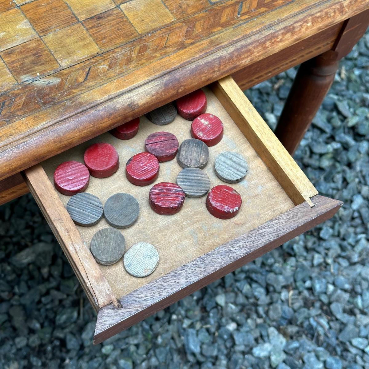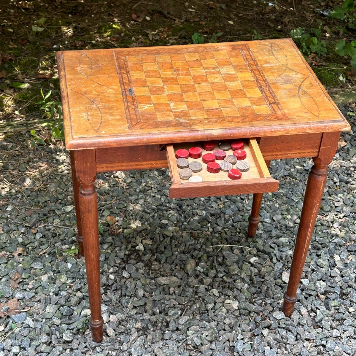 LOT 496G: Vintage Wooden Checkers Game Table w/ Checkers Pieces