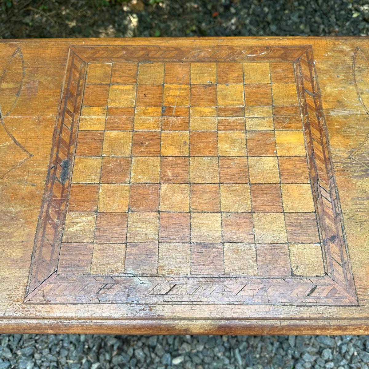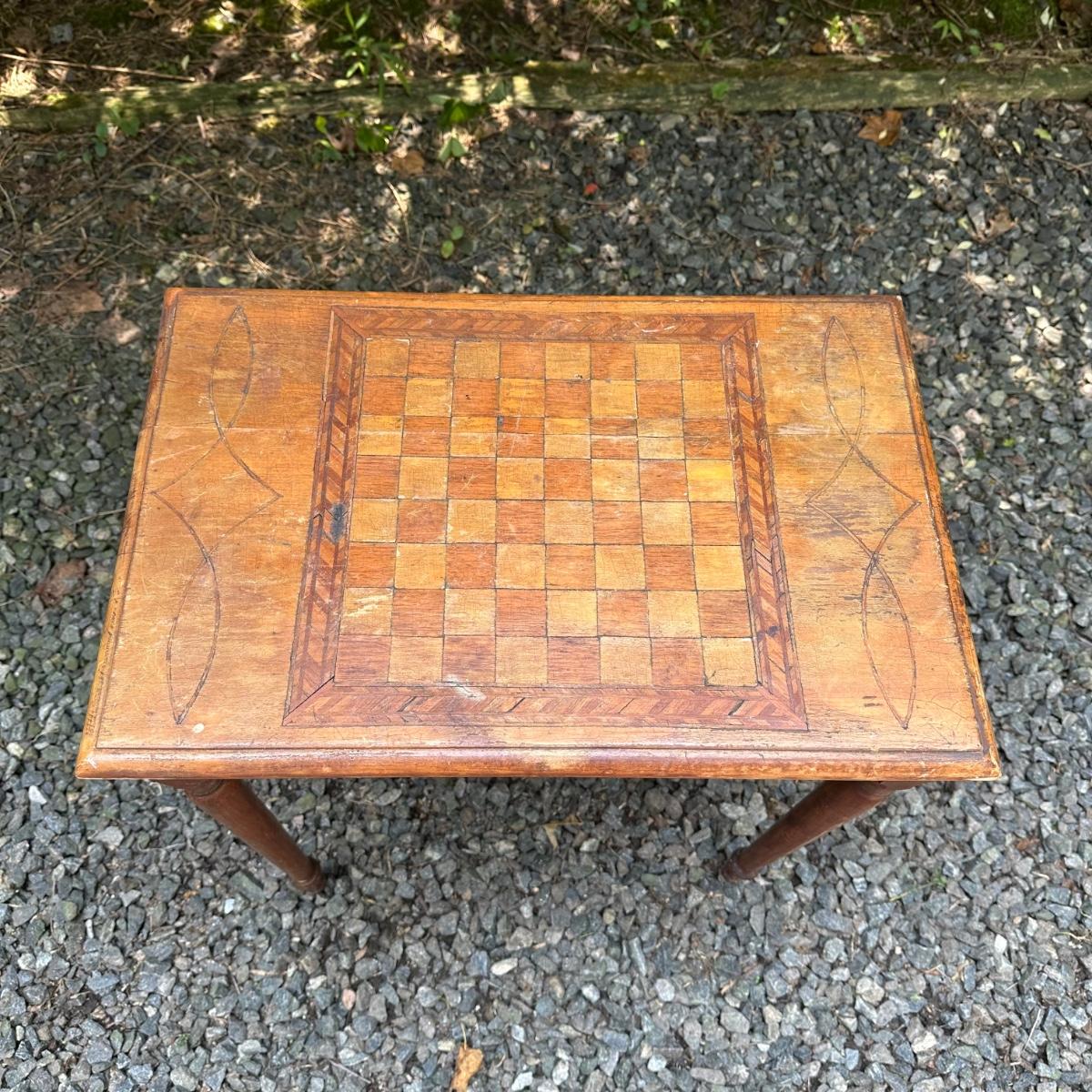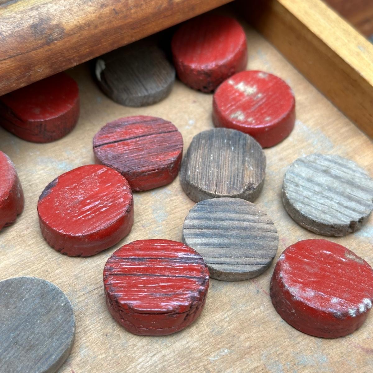 LOT 496G: Vintage Wooden Checkers Game Table w/ Checkers Pieces