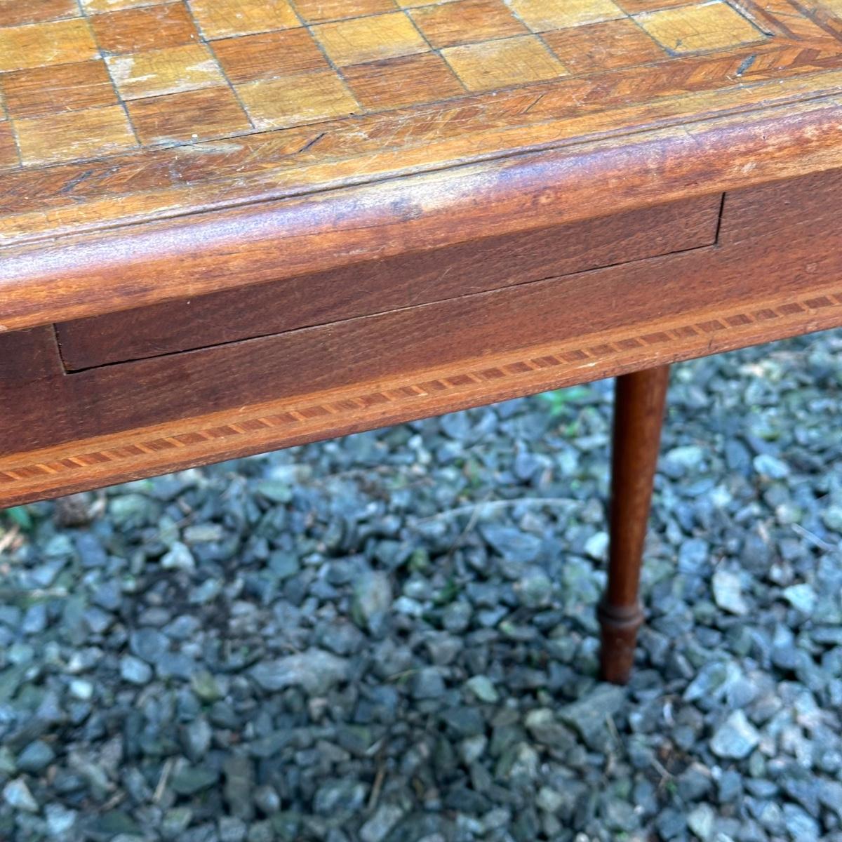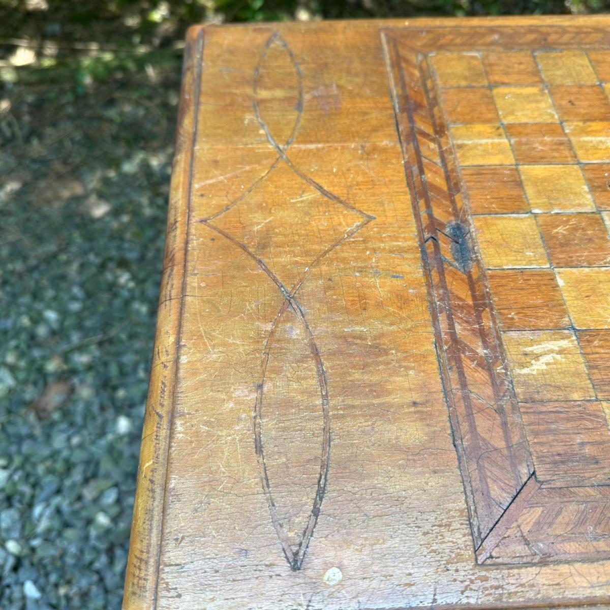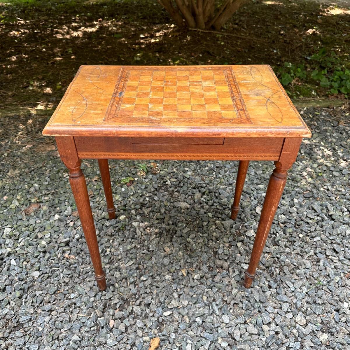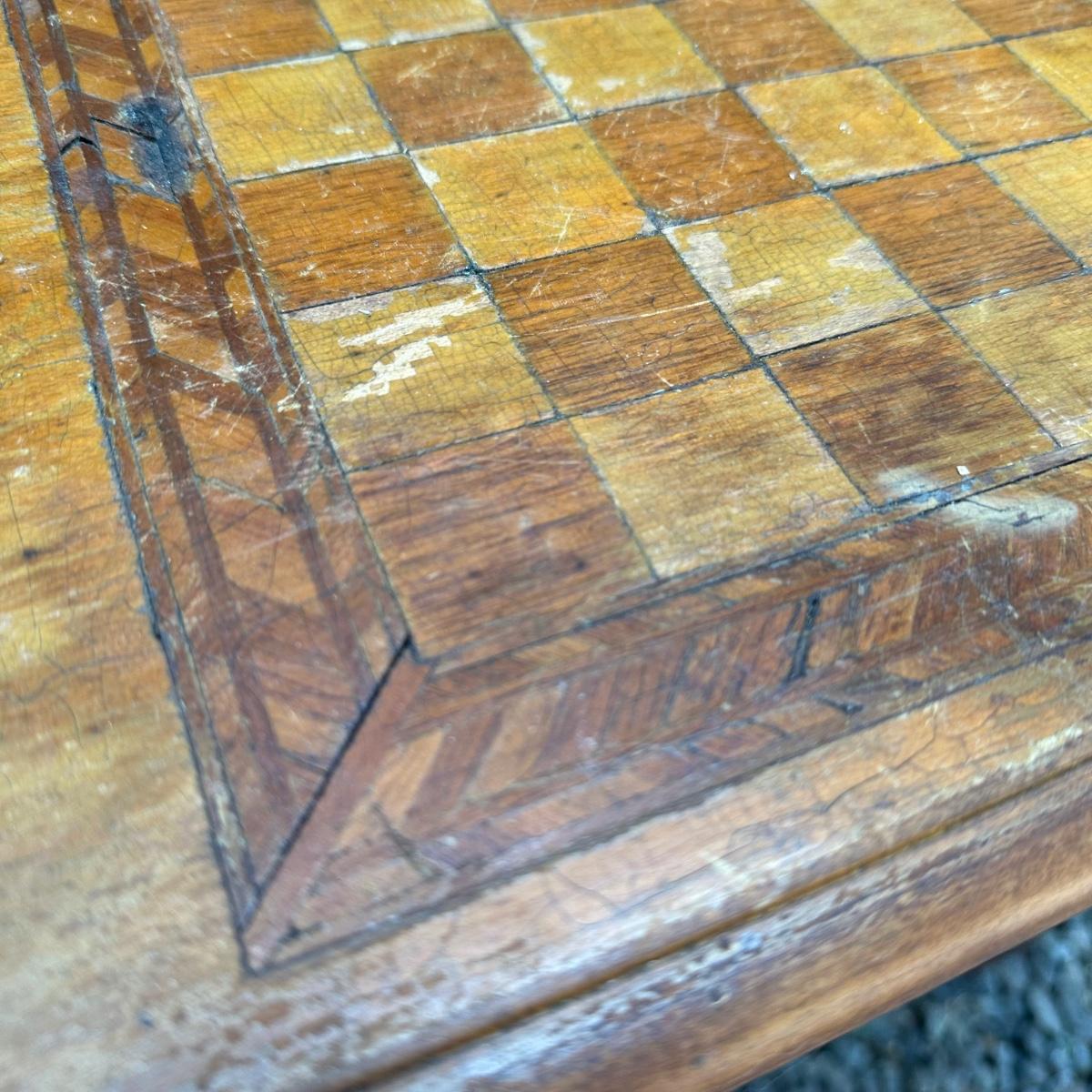 LOT 496G: Vintage Wooden Checkers Game Table w/ Checkers Pieces