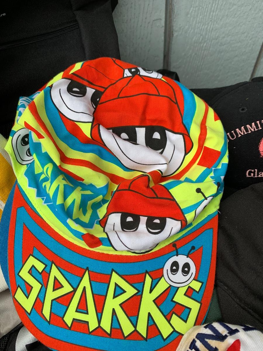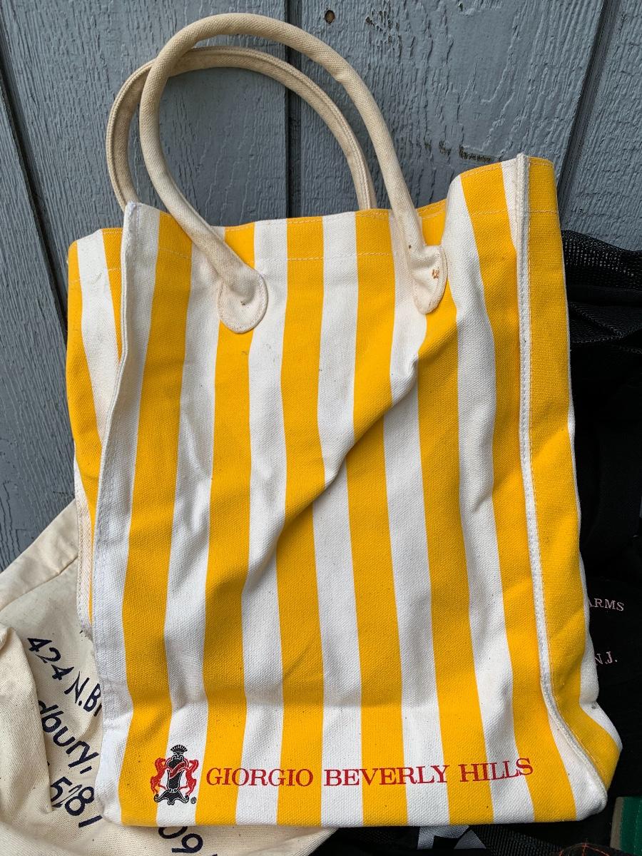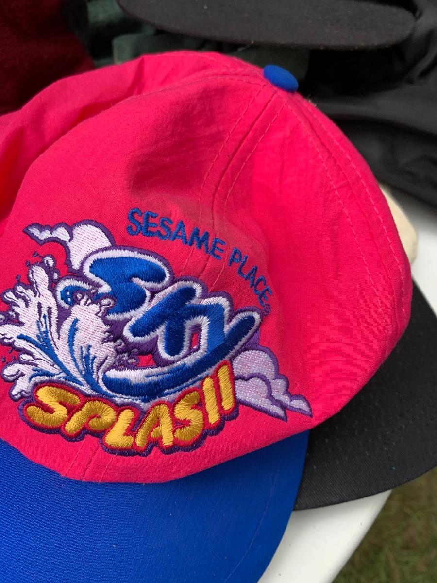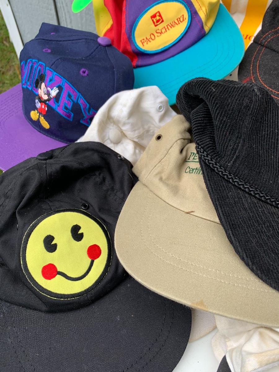 Hats: Spice Girls, Harley Davidson, Sesame Place, Batman to name a few in this lot of hats & bags. There is a new with tag Foot-Joy duffle bag, Giorgio Beverly Hills Bag, local Simpkins Cleaners, Woodbury NJ an more