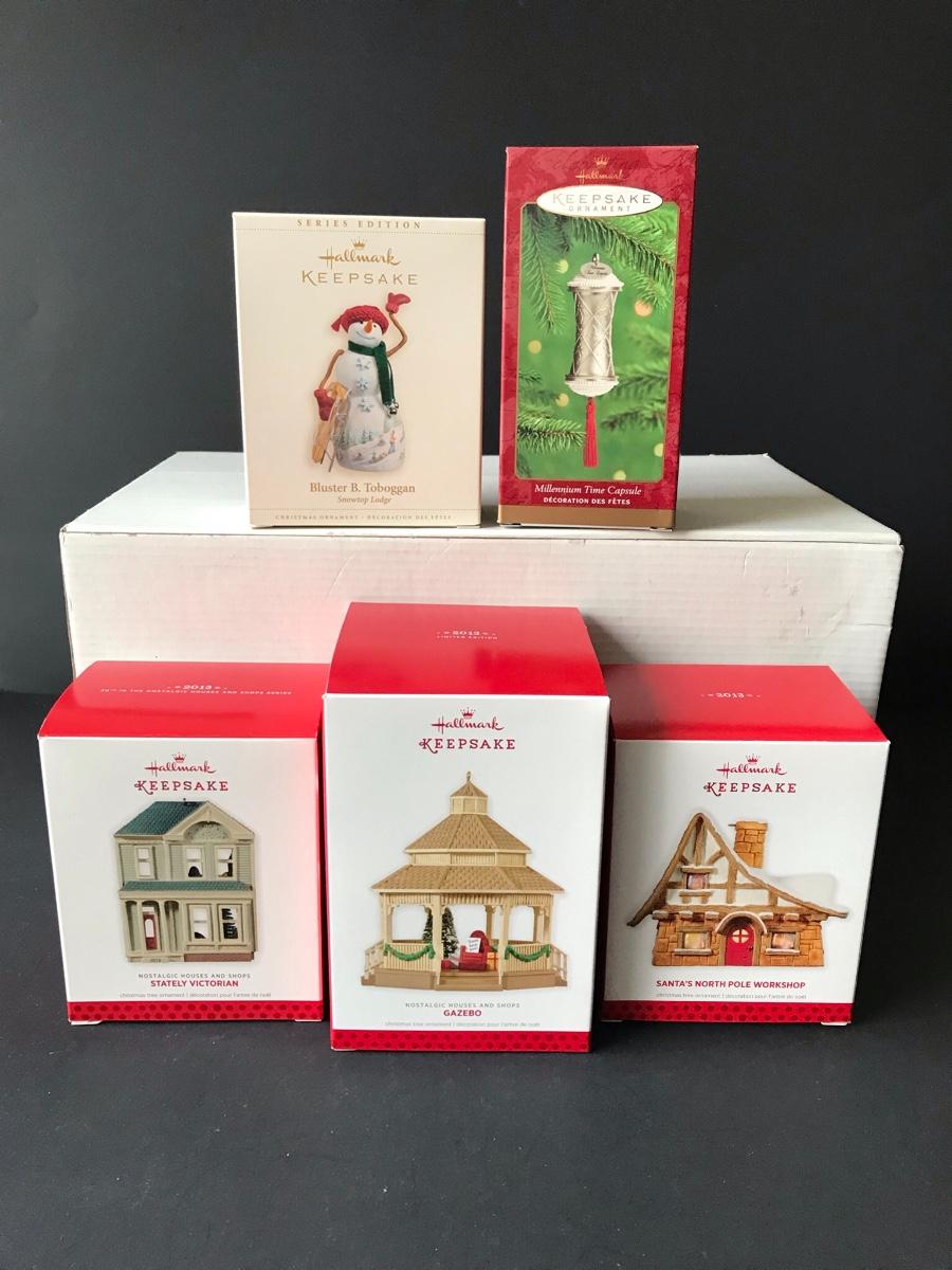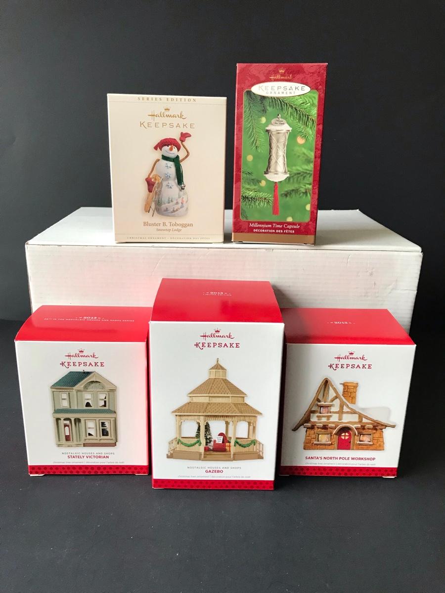 Lot 497: Hallmark Christmas Ornaments - Holiday Houses, Snowman, Time Capsule
