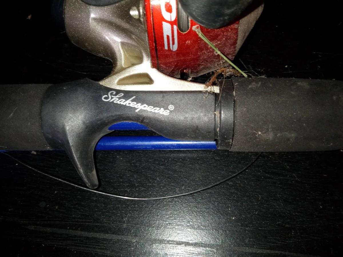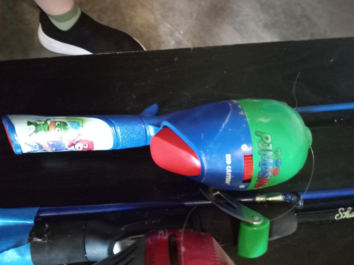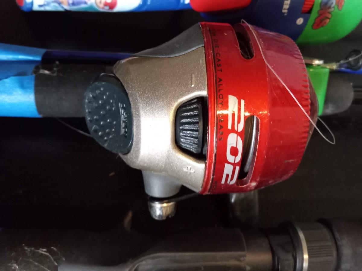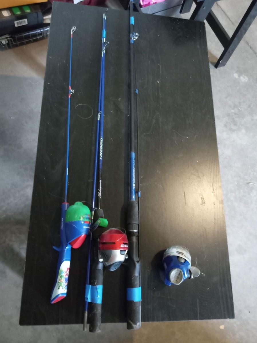 LOT 497  TWO ADULT FISHING POLES WITH REELS AND 1 CHILD POLE WITH REEL (G)