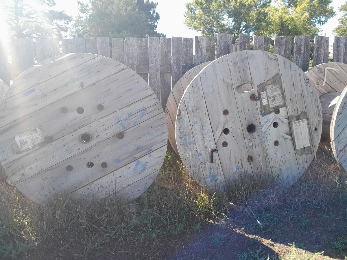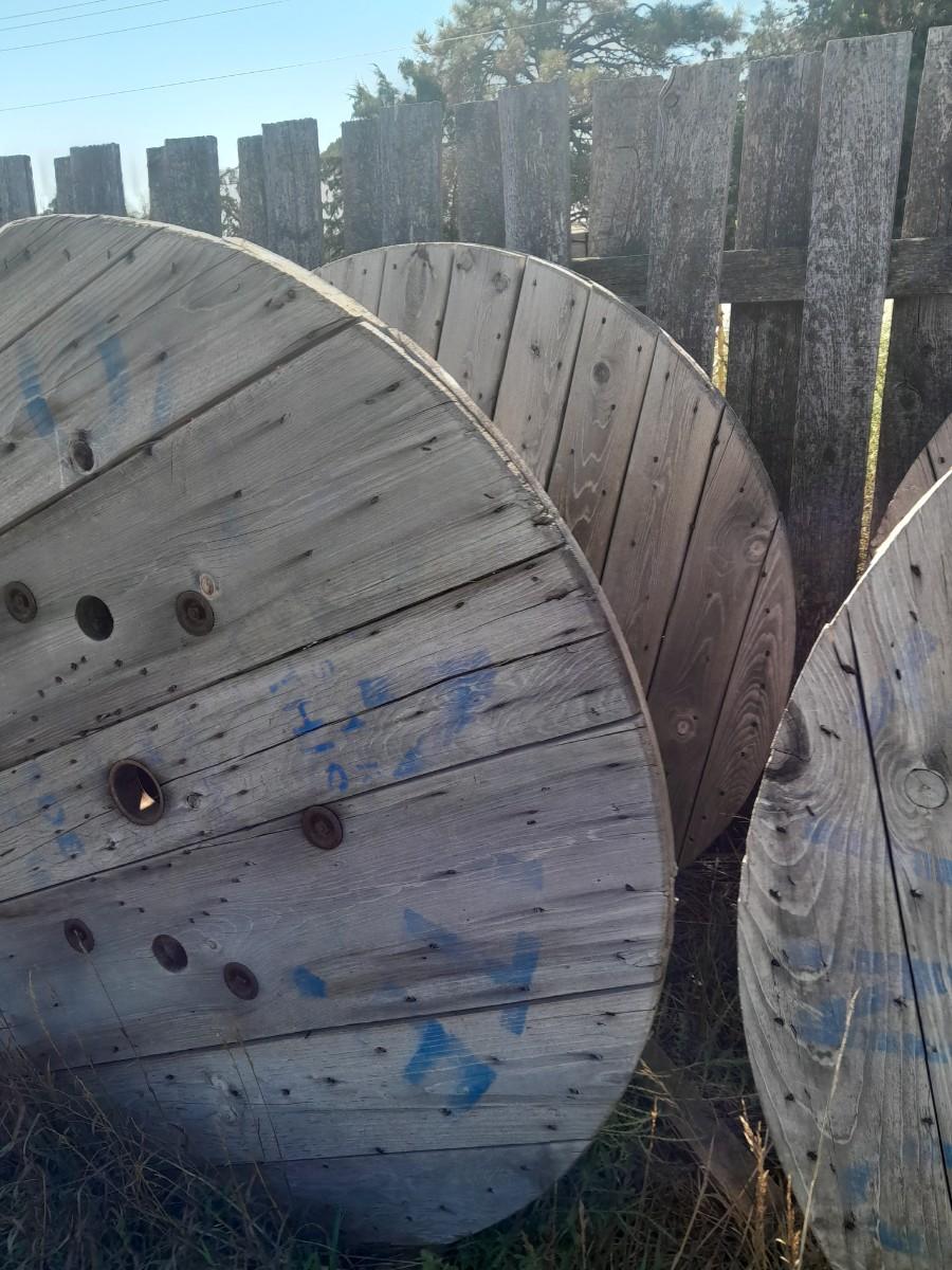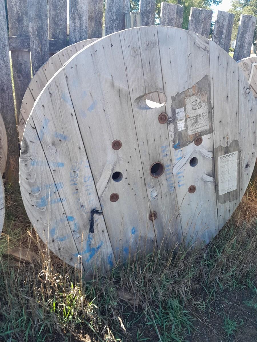 TWO LARGE SIZED WOODEN SPOOLS 57" X 36"