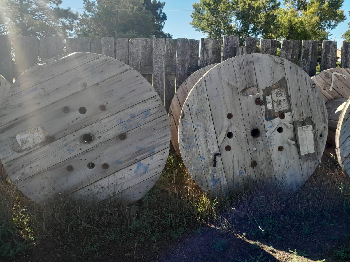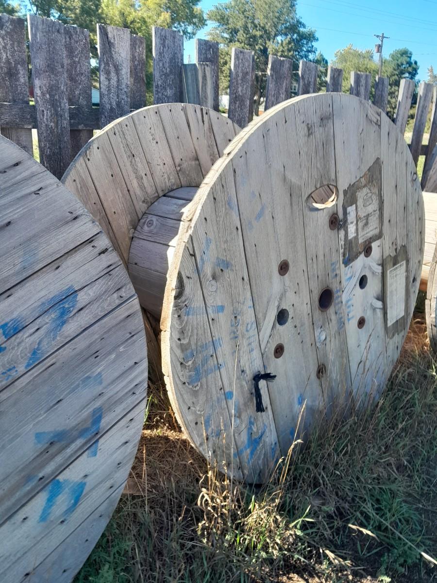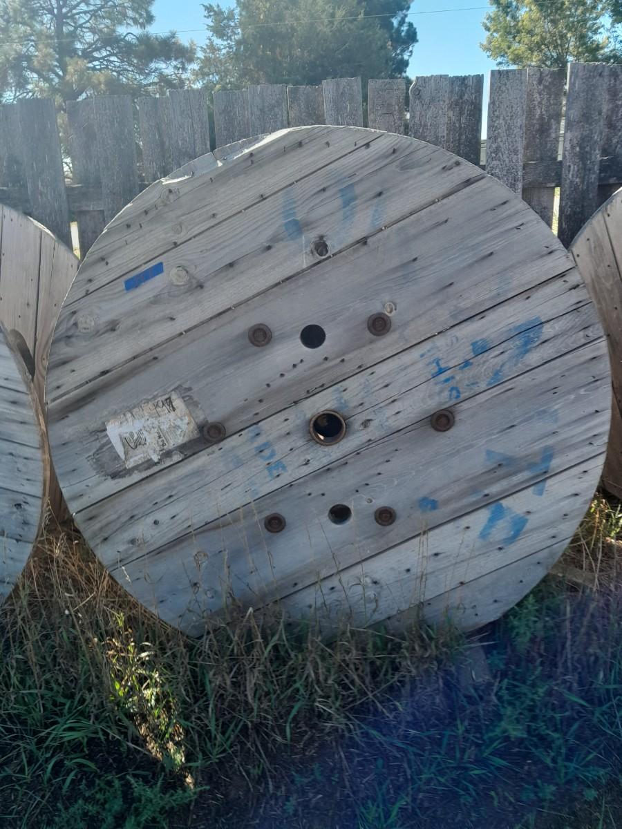TWO LARGE SIZED WOODEN SPOOLS 57" X 36"