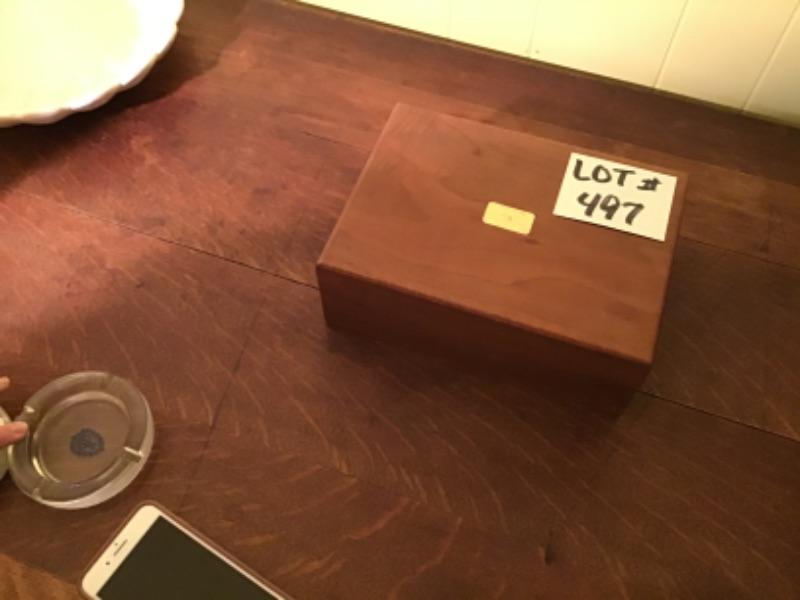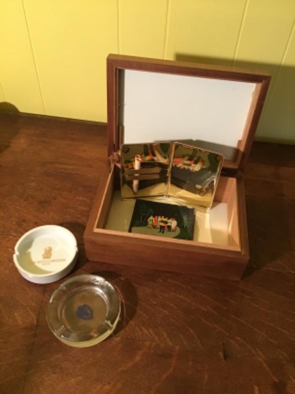 VINTAGE WOODEN HUMIDOR WITH ENGLISH VINTAGE LEATHER CIGARETTE CASE AND FOREIGN CIGARETTES