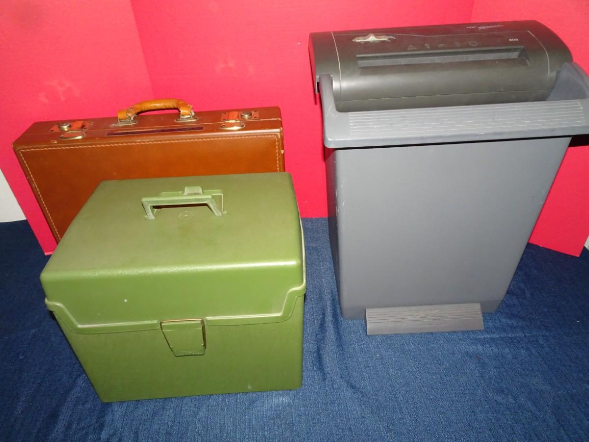 LOT 498. SHREDDER, BRIEFCASE AND FILE