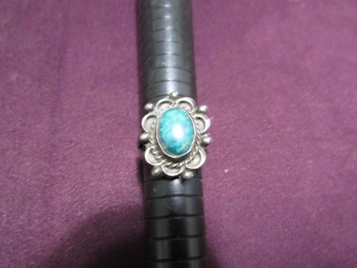 LOT 499 NATIVE AMERICAN TURQUOISE & STERLING RING