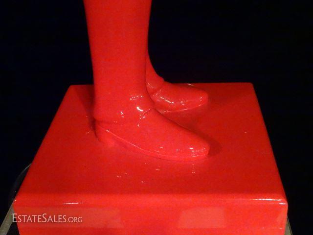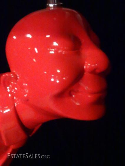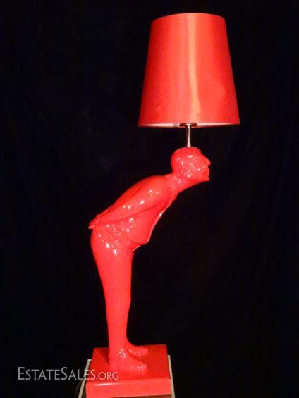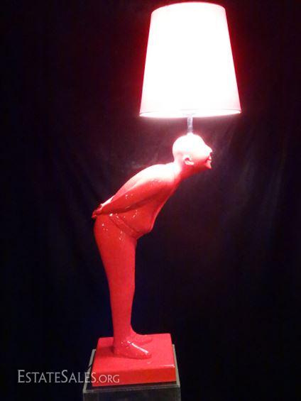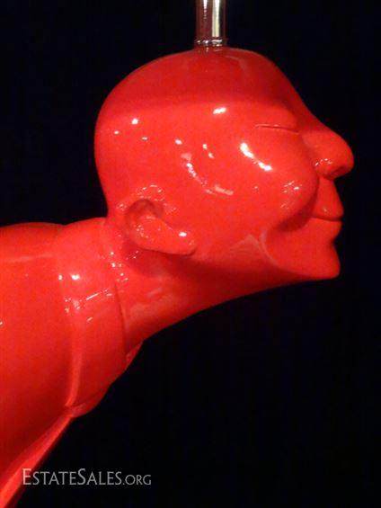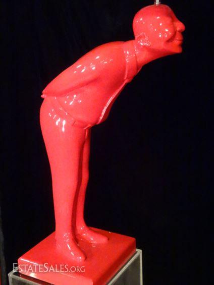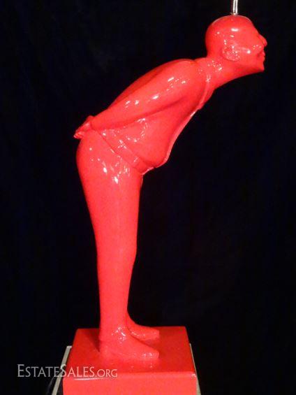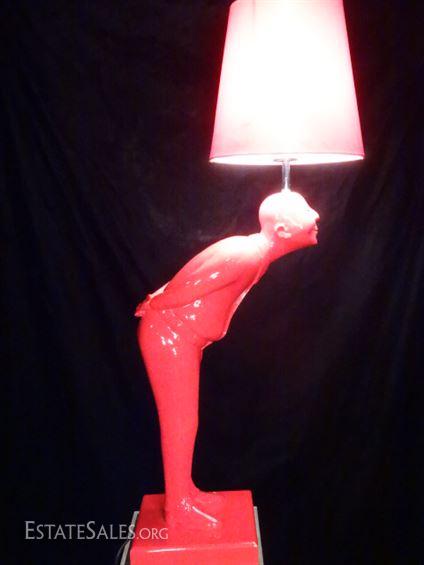 LOT 49A: LARGE BOWING MAN LAMP, RED CAST COMPOSITE