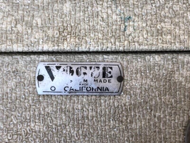 Lot 49S. Vintage “Vogue” Luggage Set, Train Case, Carry on and Large suitcase, Light Grey with Blue Satin lining, Textured Hard-case, Custom Made in San Francisco California, 1950’s “” $125