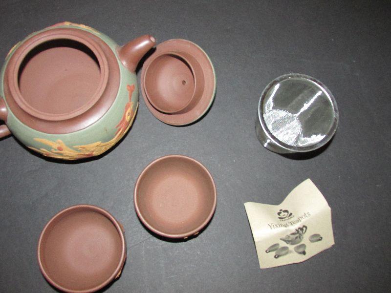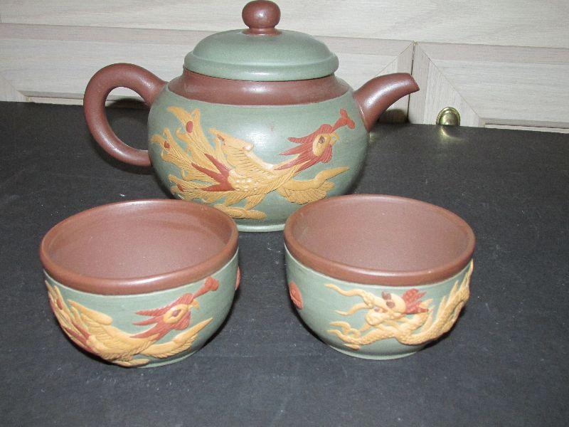 Set of teapot and two cups made by Teavana. Design name Phoenix and Dragon Yixing. Like new. No chips or cracks.