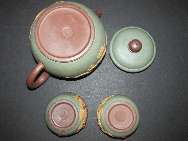 Lot 4b- Phoenix and Dragon Yixing Teapot Set