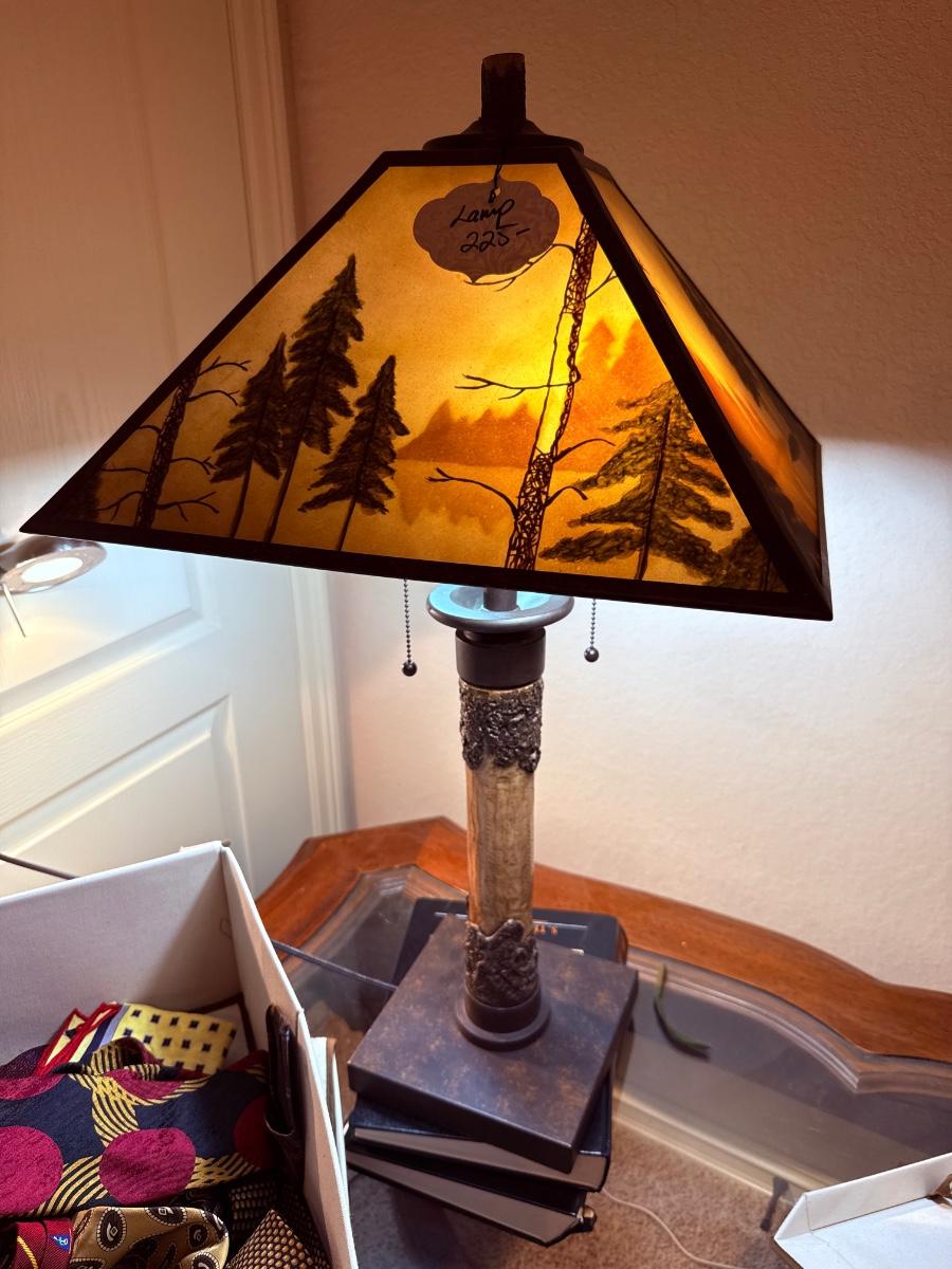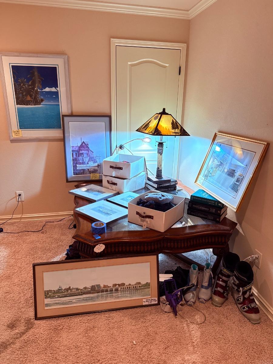 Lot 5: Large Coffee Table, Awesome Lamp, Cohen & Carol Colette Art & More