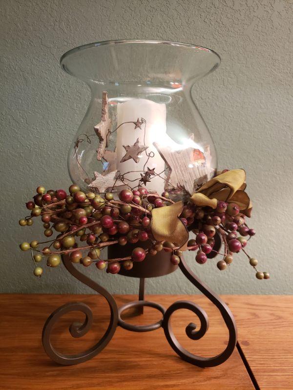 Large Candleholder with Stars and Flameless Candle. 12"x18"