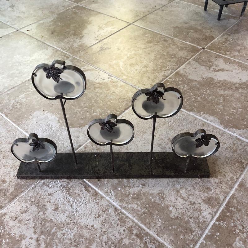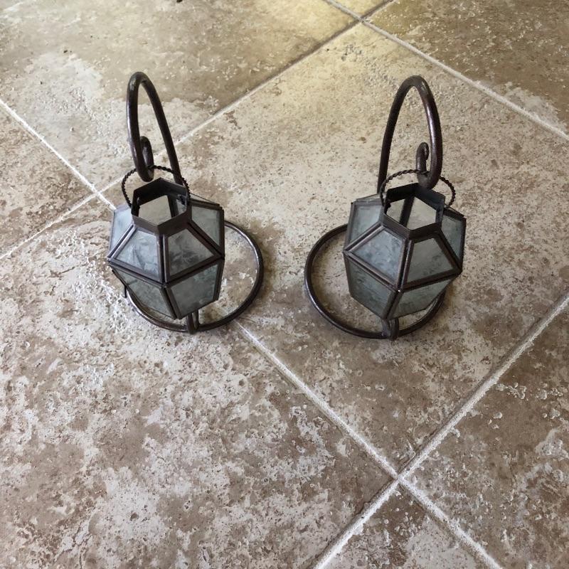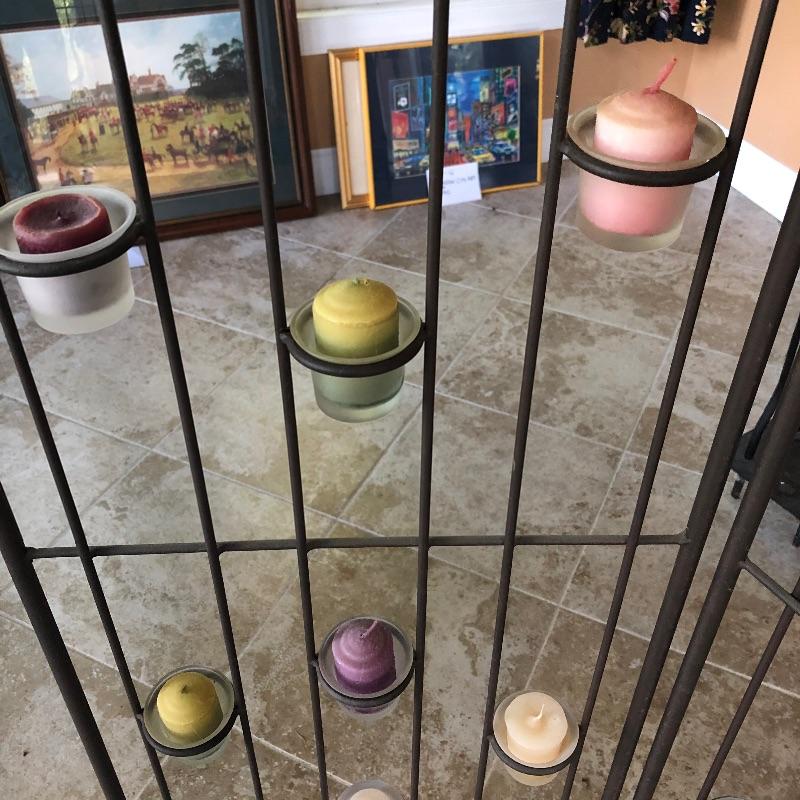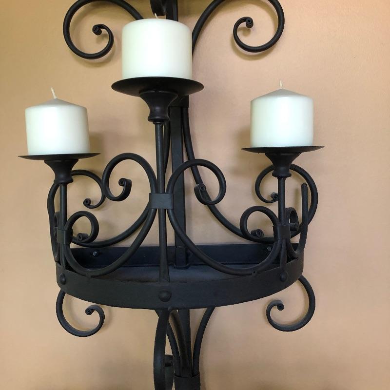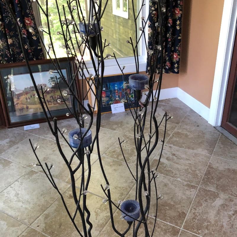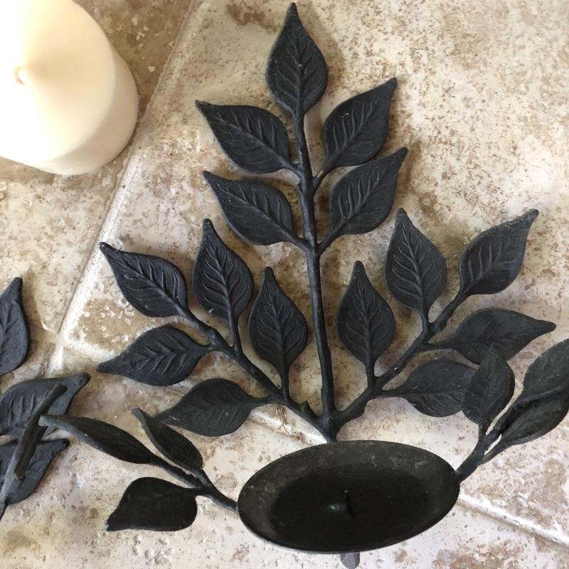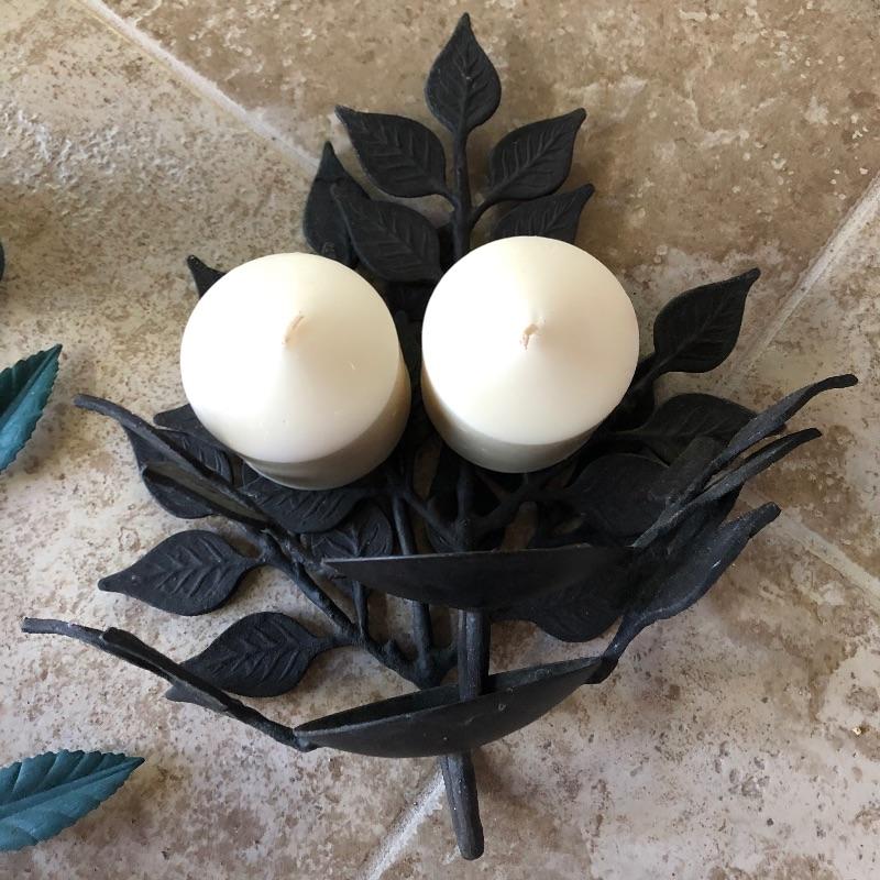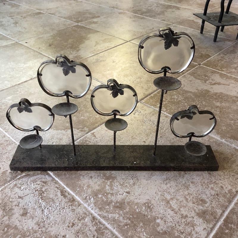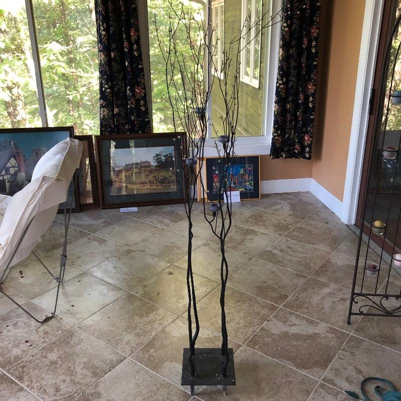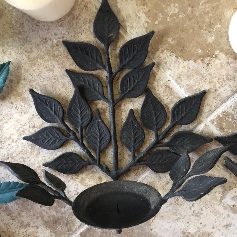 This lot is the perfect way to easily spice up any room in the house while also making it smell good! This lot includes seven metal decorated candle holders, Three of which are wall mountable. Four of the holders include candles. The largest three tiered metal, wall mountable holder measures about 64" x 22.5" x 10.5". The smallest wall mounted holder measures about 11" x 10.5" x 5". The largest table top / standing candle holder which is the screen free standing piece measures about 66.5" x 46". The smallest table top / standing holder with the pumpkins measures 10" x 7". The square based tree looking piece has glass beads on it which will catch the candle light so nicely. All are in good condition. Local pick up only.