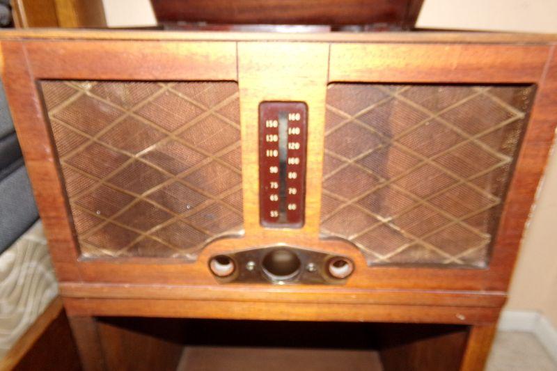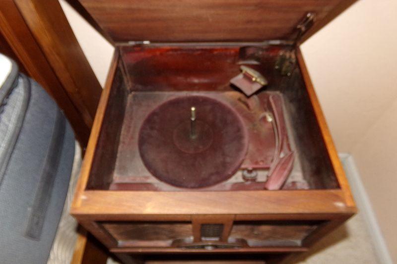 THE ANTIQUE PHONOGRAPH/STEREO NO LONGER PLAYS AND IS JUST FOR LOOKS. EVERYTHING HAS BEEN REMOVED EXCEPT THE PHONOGRAPH BUT THERE'S NO POWER CORD.