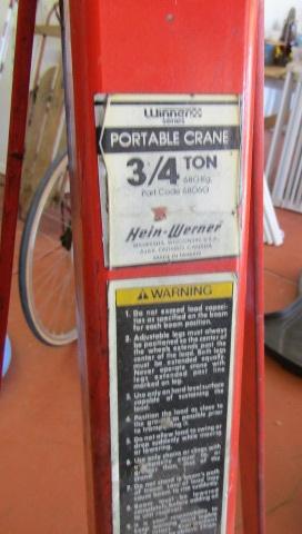 HEIN-WERNER PORTABLE HYDRAULIC CRANE 3/4 TON