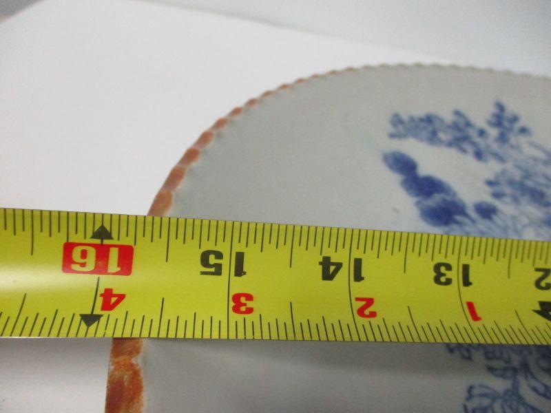 Lot 5 -Vintage Blue & White Chinoiserie Porcelain Plate Picture Frame with Ikebana Backdrop Scallop Edge 16"
