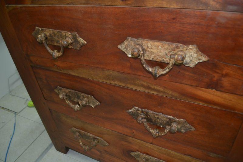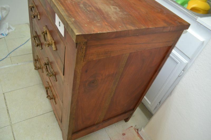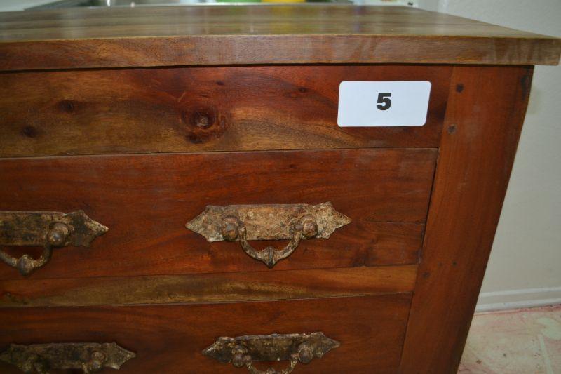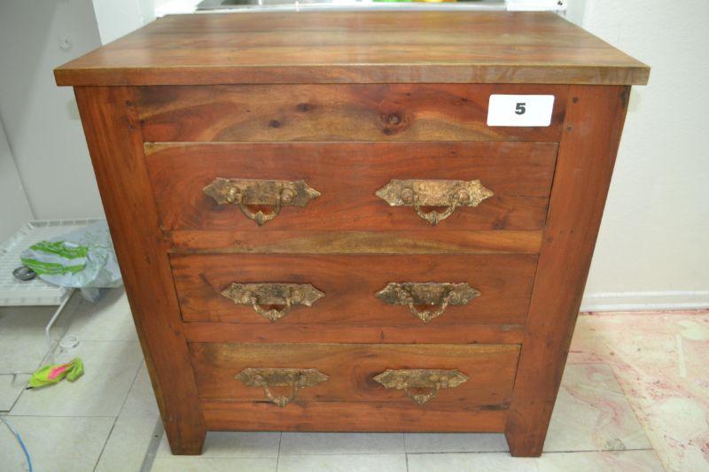 LOT 5 THREE DRAWER WOOD CHEST 36" X 21" X 36" CHEST HAS HEAVY METAL HARDWARE