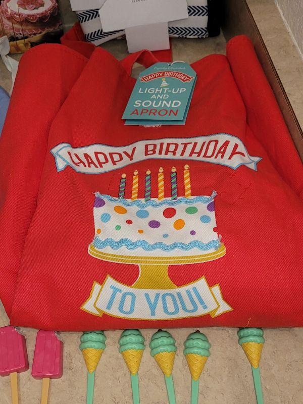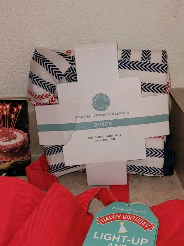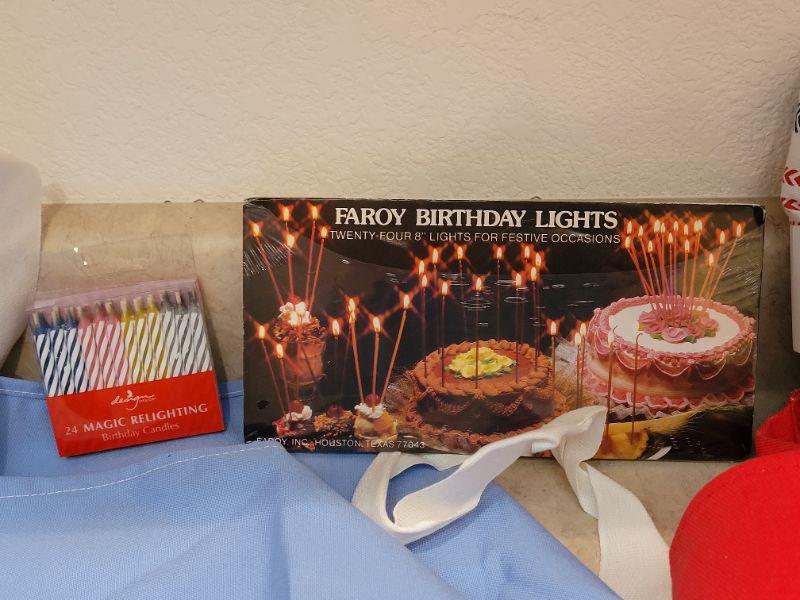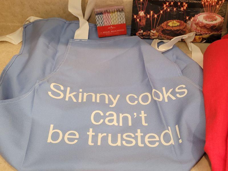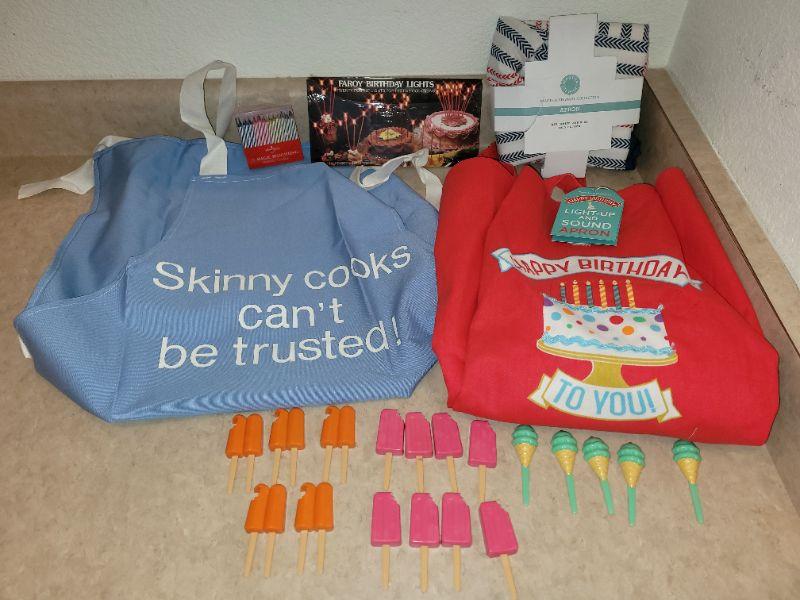 Lot 5: NEW Kitchen Aprons (3), Cupcake Decorations and Birthday Candles