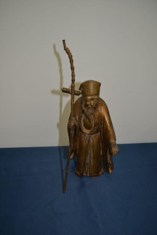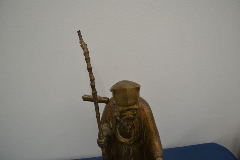 LOT 5  VINTAGE BRASS FIGURINE OLD MAN WITH WALKING STICK (HEAVY)