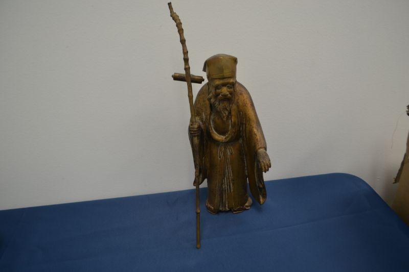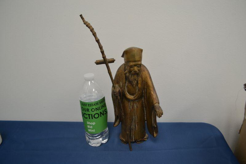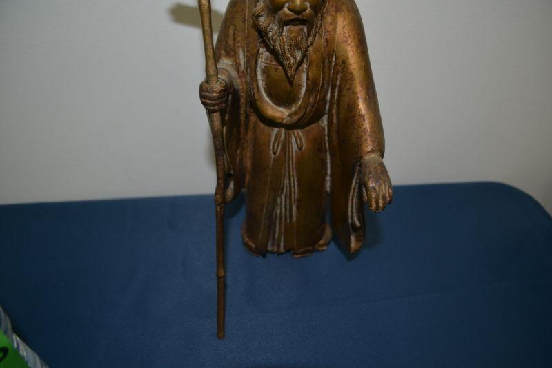 LOT 5 VINTAGE BRASS FIGURINE OLD MAN WITH WALKING STICK (HEAVY)
