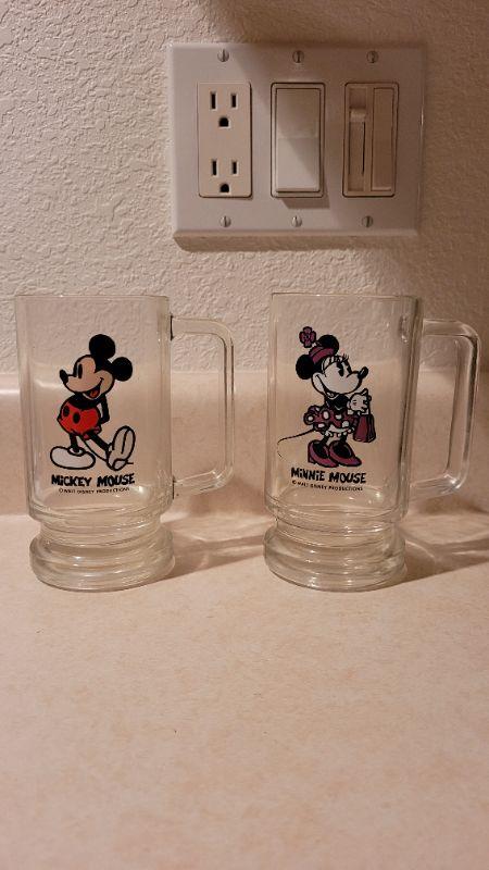 Lot 5: Vintage Mickey and Minnie Mouse Glass Mugs